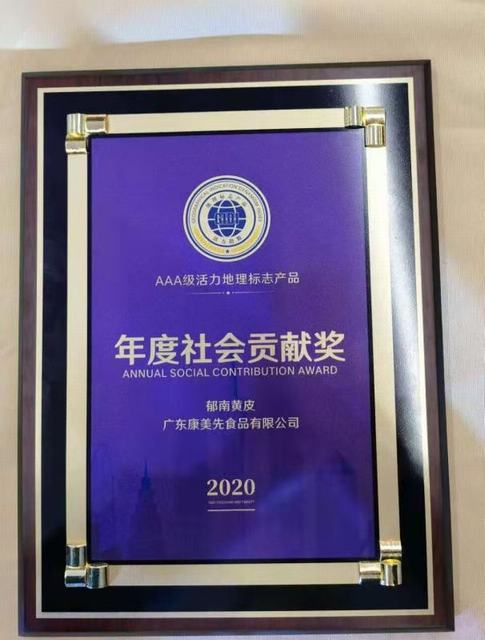 2020年11月在粵港澳大灣區(qū)核心地標(biāo)——“廣州塔”舉行的“中國(guó)地理標(biāo)志產(chǎn)品活力指數(shù)頒獎(jiǎng)盛典”上,經(jīng)中國(guó)地理標(biāo)志產(chǎn)品活力指數(shù)發(fā)布評(píng)審活動(dòng)組委會(huì)、廣東省農(nóng)村電子商務(wù)協(xié)會(huì)評(píng)定,廣東康美先食品有限公司生產(chǎn)的無(wú)核黃皮餅榮獲年度社會(huì)貢獻(xiàn)獎(jiǎng)。