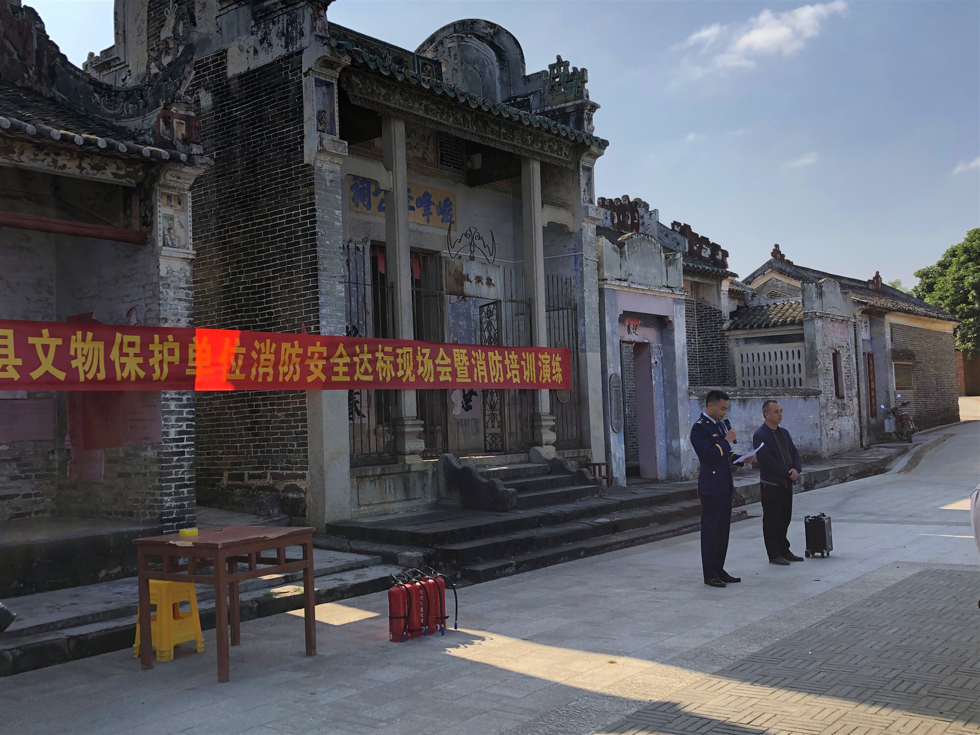 為進(jìn)一步落實(shí)全縣文物保護(hù)單位消防安全責(zé)任,提高消防安全管理水平,增強(qiáng)主體責(zé)任主體意識(shí)和防控火災(zāi)的能力,有效預(yù)防和減少火災(zāi)事故發(fā)生,確保文物安全,近日,郁南縣在大灣鎮(zhèn)五星村大灣古建筑群舉辦文物保護(hù)單位消防安全達(dá)標(biāo)現(xiàn)場(chǎng)會(huì)暨消防培訓(xùn)演練。郁南縣文化廣電旅游體育局、縣消防救援大隊(duì)主要負(fù)責(zé)人、縣住房和城鄉(xiāng)建設(shè)局分管負(fù)責(zé)人和相關(guān)人員、各鎮(zhèn)政府分管負(fù)責(zé)人及負(fù)責(zé)文物保護(hù)工作人員、縣博物館負(fù)責(zé)人、廣東南江田園文化旅游投資有限公司相關(guān)負(fù)責(zé)人及負(fù)責(zé)消防安全工作人員參加了此次活動(dòng)。