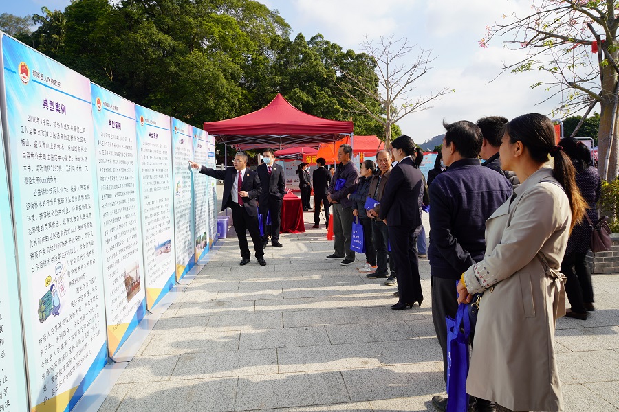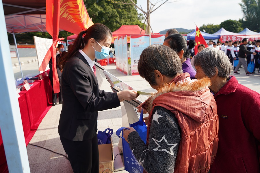 為深入學(xué)習(xí)貫徹習(xí)近平法治思想,弘揚(yáng)憲法精神,加強(qiáng)新時(shí)代法律監(jiān)督工作,12月3日,郁南縣檢察院舉行“學(xué)習(xí)習(xí)近平法治思想,強(qiáng)化新時(shí)代法律監(jiān)督”檢察開放日活動(dòng),首次以走進(jìn)鎮(zhèn)村形式開展豐富多彩的普法宣傳活動(dòng)。當(dāng)?shù)厝舜蟠?、教師學(xué)生、群眾等200多人現(xiàn)場(chǎng)參與。