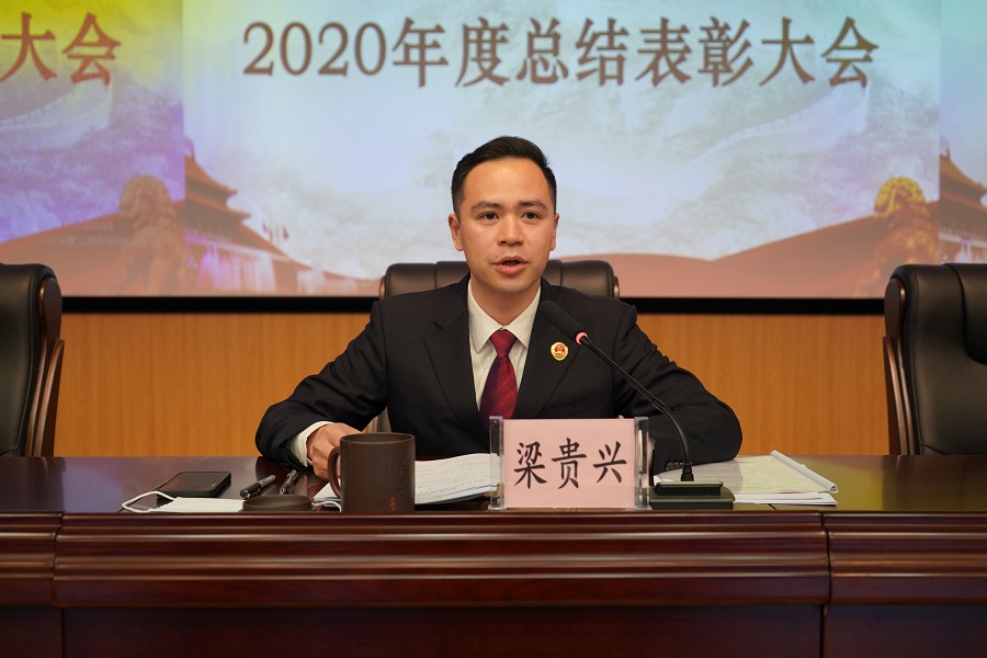 最后,梁檢在總結(jié)發(fā)言中指出,過去的一年,縣檢察院按照“12345”發(fā)展規(guī)劃部署要求,持續(xù)深化郁南檢察“四大工程”,全力創(chuàng)建“五大品牌”,各項(xiàng)工作取得了新進(jìn)展,梁檢從各方面回顧了縣檢察院2020年檢察工作所取得的成績:一是以更高的檢察自覺護(hù)航發(fā)展砥礪擔(dān)當(dāng);二是以更實(shí)的檢察履職守護(hù)平安奮力作為;三是以更強(qiáng)的檢察產(chǎn)品維護(hù)正義守護(hù)公平;四是以更硬的檢察素質(zhì)強(qiáng)基固本鑄就鐵軍。同時(shí),他指出,在肯定成績的同時(shí),也要清醒地看到工作中存在的問題和不足,對這些問題和不足要給予高度的重視,在今后的工作中,要以更大的力度、更加求真務(wù)實(shí)的態(tài)度認(rèn)真加以整改。并對縣檢察院2021年的工作強(qiáng)調(diào)了五點(diǎn)要求: