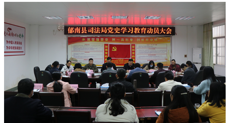 會(huì)議由鄧永燕同志傳達(dá)了省、市、縣黨史學(xué)習(xí)教育動(dòng)員大會(huì)精神,賴偉強(qiáng)同志就縣司法局黨史學(xué)習(xí)教育部署作動(dòng)員講話。