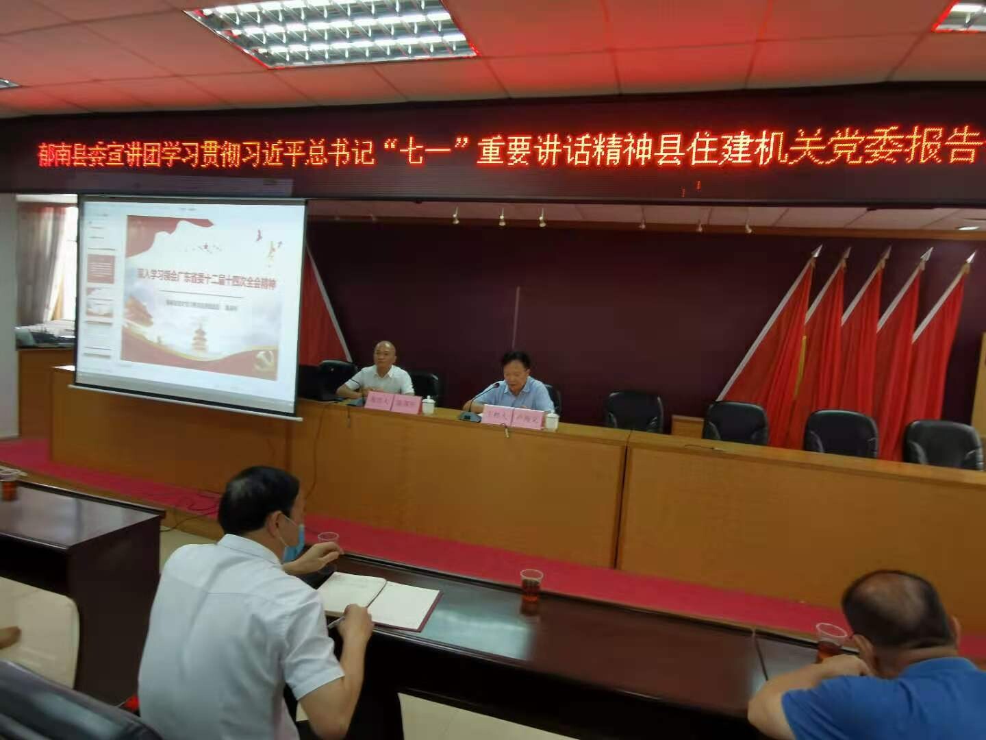 8月12日,為深入學(xué)習(xí)習(xí)近平總書記在慶祝中國共產(chǎn)黨成立100周年大會(huì)上的重要講話精神,縣住建局機(jī)關(guān)黨委在四樓大會(huì)議室舉行習(xí)近平總書記 “七一”重要講話精神宣講報(bào)告會(huì),會(huì)議由機(jī)關(guān)黨委書記盧海文主持,邀請縣委宣講團(tuán)成員陳演年作專題報(bào)告,60多名黨員干部參加會(huì)議。
