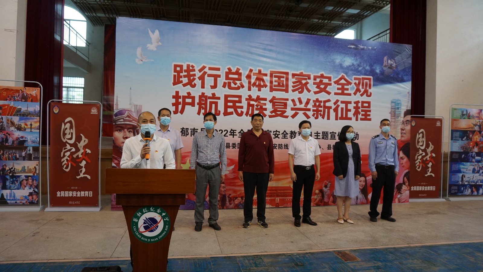 2022年4月15日,是第七個(gè)全民國家安全教育日,在第七個(gè)全民國家安全教育日來臨之際,為加強(qiáng)對國家安全的宣傳教育,提升青少年學(xué)生的國家安全意識,營造良好的自覺履行維護(hù)國家安全責(zé)任義務(wù)和教育的氛圍,4月13日上午,由縣委國安辦、縣國安防線辦、縣普法辦、縣教育局聯(lián)合主辦的郁南縣2022年全民國家安全教育日主題宣傳活動(dòng)在蔡朝焜紀(jì)念中學(xué)舉行。縣委政法委、縣公安局、縣司法局、縣教育局有關(guān)領(lǐng)導(dǎo)出席了此次活動(dòng)?;顒?dòng)由學(xué)校副校長陳演年主持。