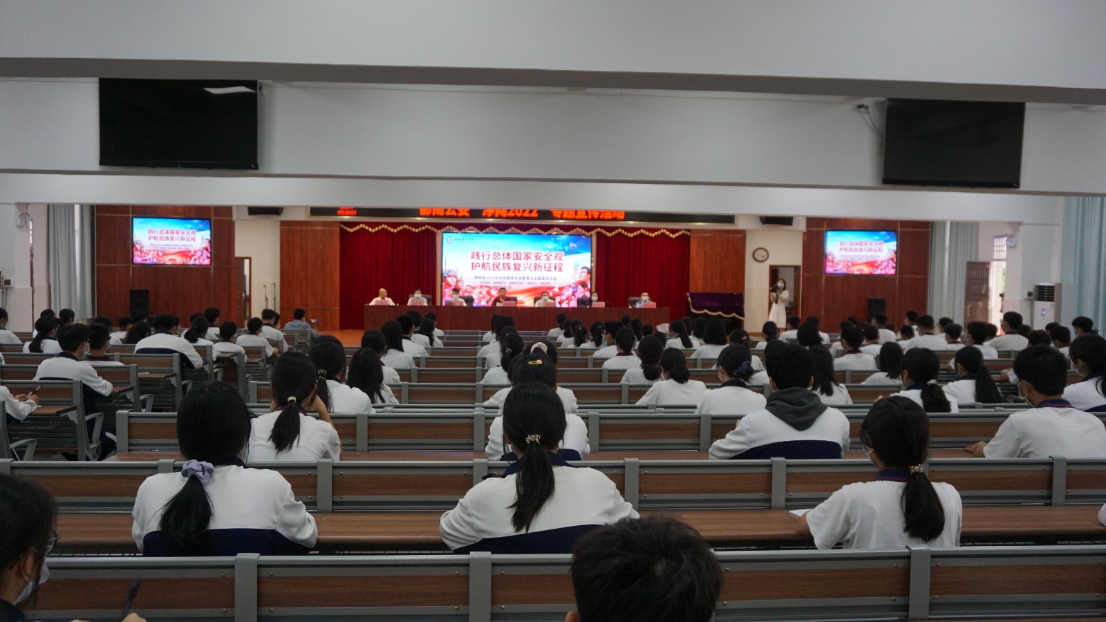 在學(xué)校演播廳,舉行了全民國家安全教育法治宣傳專題講座。講座前,縣教育局朱東仁副局長為活動(dòng)致辭,他向同學(xué)們闡釋了總體國家安全觀的內(nèi)涵,并呼吁同學(xué)們,一起維護(hù)國家安全,筑牢國家安全底線,保護(hù)自己,保護(hù)國家安全,共筑美好的家園。