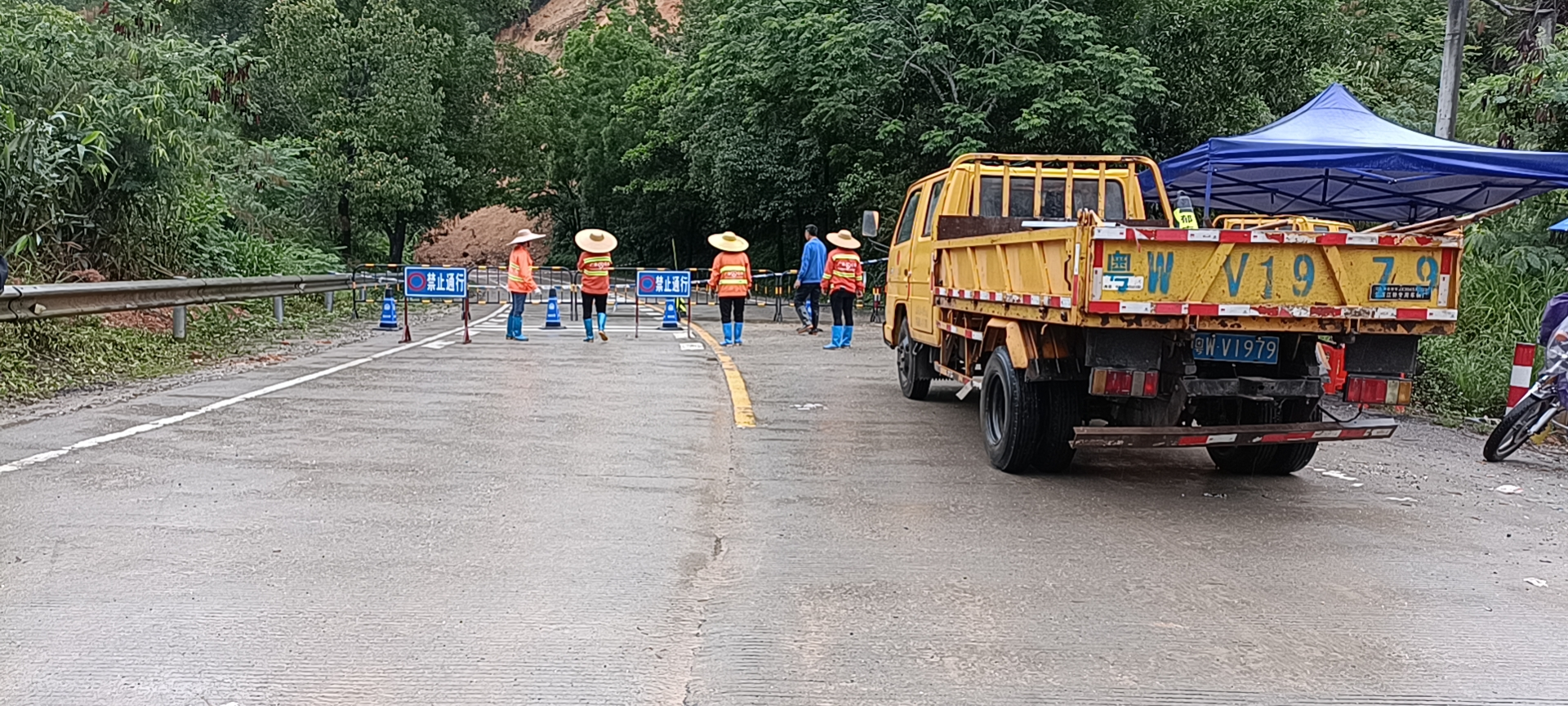 ▲應(yīng)急搶險(xiǎn)隊(duì)伍在山體滑坡路段實(shí)施交通管控