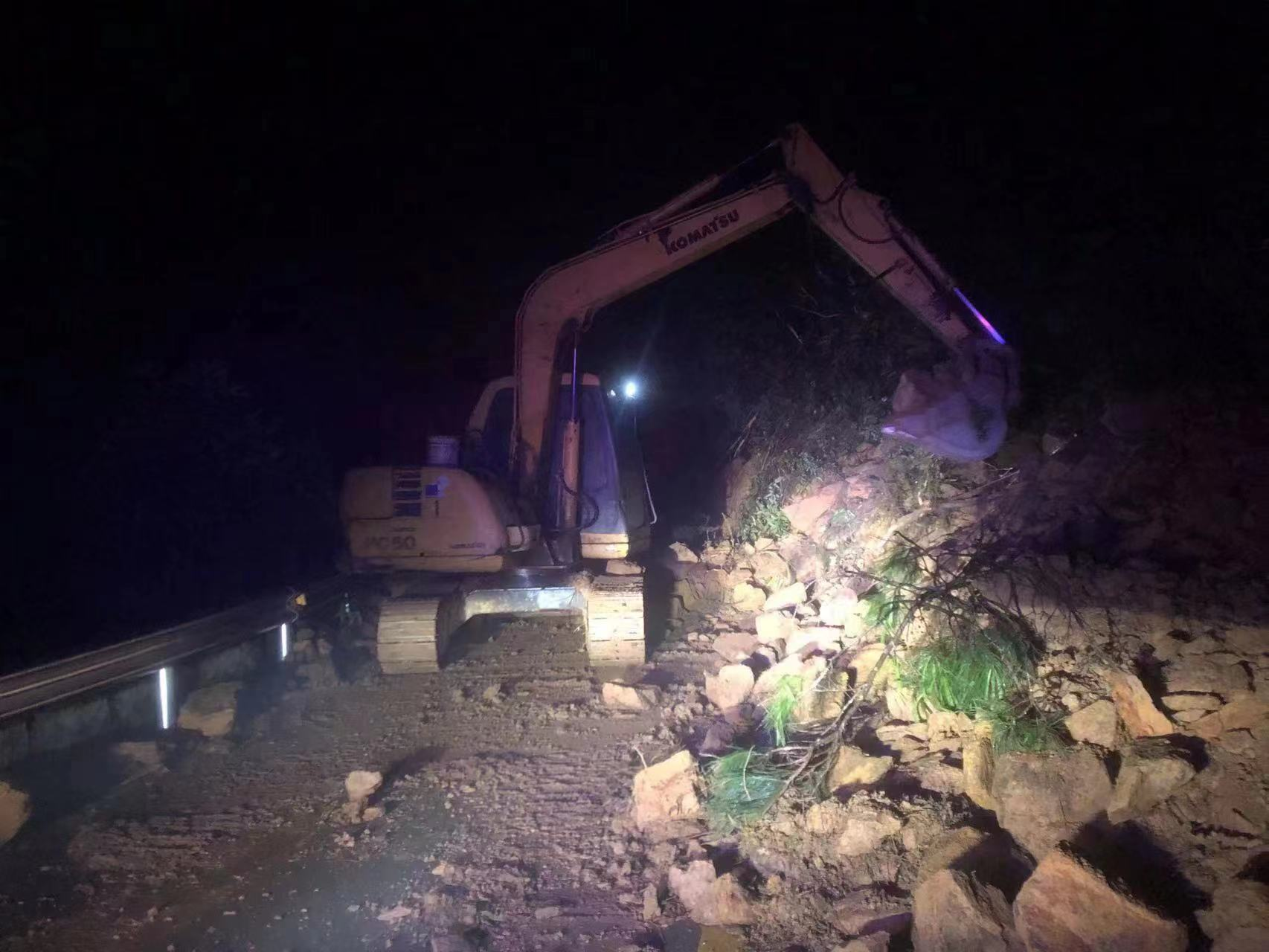 ▲搶險(xiǎn)隊(duì)伍連夜對山體滑坡路段進(jìn)行搶險(xiǎn)保通