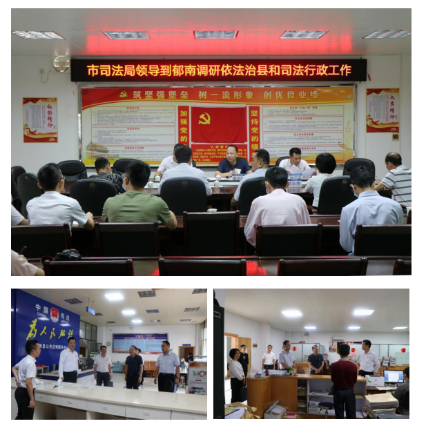 在縣司法局機(jī)關(guān),調(diào)研組先后到各服務(wù)大廳、各業(yè)務(wù)股室進(jìn)行實(shí)地調(diào)研,在陪同人員介紹下,每到一處均駐足詳細(xì)了解司法行政工作,主動(dòng)詢問日常業(yè)務(wù)開展情況,認(rèn)真聽取我縣依法治縣、法律援助、社區(qū)矯正、公證服務(wù)、法律顧問等工作落實(shí)情況。隨后,在局機(jī)關(guān)三樓會(huì)議室召開工作座談會(huì),王朝輝、賴偉強(qiáng)分別就近期我縣司法行政工作開展落實(shí)情況進(jìn)行匯報(bào),重點(diǎn)圍繞依法治縣、重大項(xiàng)目法治護(hù)航、疫情防控、法律服務(wù)工作等進(jìn)行報(bào)告。