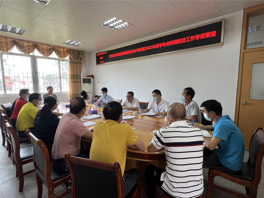 5月31日上午,中共云浮市委督查室謝高發(fā)副主任帶領(lǐng)市聯(lián)合督查組蒞臨蔡朝焜紀(jì)念中學(xué)開展2022年高考考點(diǎn)疫情防控工作專項(xiàng)督查,縣委機(jī)要局局長陳燈殿及縣委督查室、縣教育局等有關(guān)負(fù)責(zé)人陪同督查。 市聯(lián)合督查組一行來到蔡朝焜紀(jì)念中學(xué)考點(diǎn),聽取了考點(diǎn)主考彭燕飛校長相關(guān)工作匯報(bào),實(shí)地查看了標(biāo)準(zhǔn)化監(jiān)控設(shè)備及校園環(huán)境,認(rèn)真查閱了學(xué)校高考疫情防控應(yīng)急預(yù)案、高考考點(diǎn)疫情防控演練方案、高三師生晨午晚檢記錄、教室消毒記錄、師生核酸檢測情況等高考考點(diǎn)疫情防控資料。督查組對我校高考考點(diǎn)疫情防控的各項(xiàng)工作給予了充分肯定。督查組強(qiáng)調(diào),要切實(shí)做好高考考點(diǎn)疫情防控各項(xiàng)工作,從嚴(yán)從細(xì)從實(shí)落實(shí)高考各項(xiàng)措施。確??荚図樌M(jìn)行,做到健康高考,平安高考。 高考在即,我校將繼續(xù)立足高標(biāo)準(zhǔn),嚴(yán)要求,細(xì)化落實(shí)各項(xiàng)工作措施,認(rèn)真做好今年高考準(zhǔn)備工作,為2022年高考保駕護(hù)航!