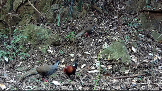近日,廣東郁南同樂大山省級自然保護區(qū)工作人員回收生物監(jiān)測紅外相機,在處理數(shù)據(jù)時,驚喜地發(fā)現(xiàn),紅外相機多次定格國家二級保護動物原雞、白鷴現(xiàn)身一同現(xiàn)身的珍貴畫面。