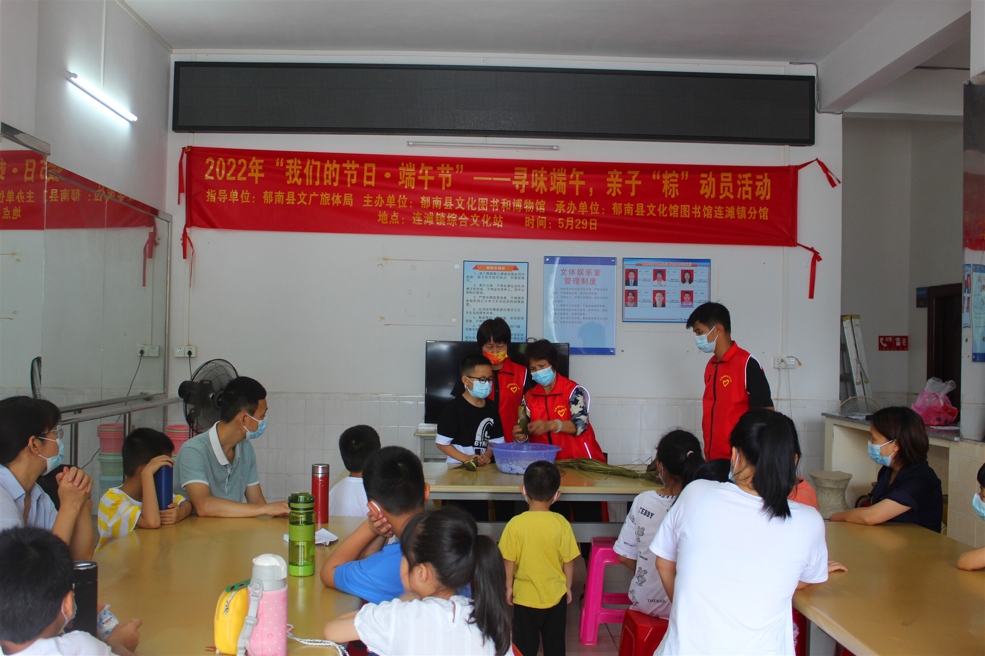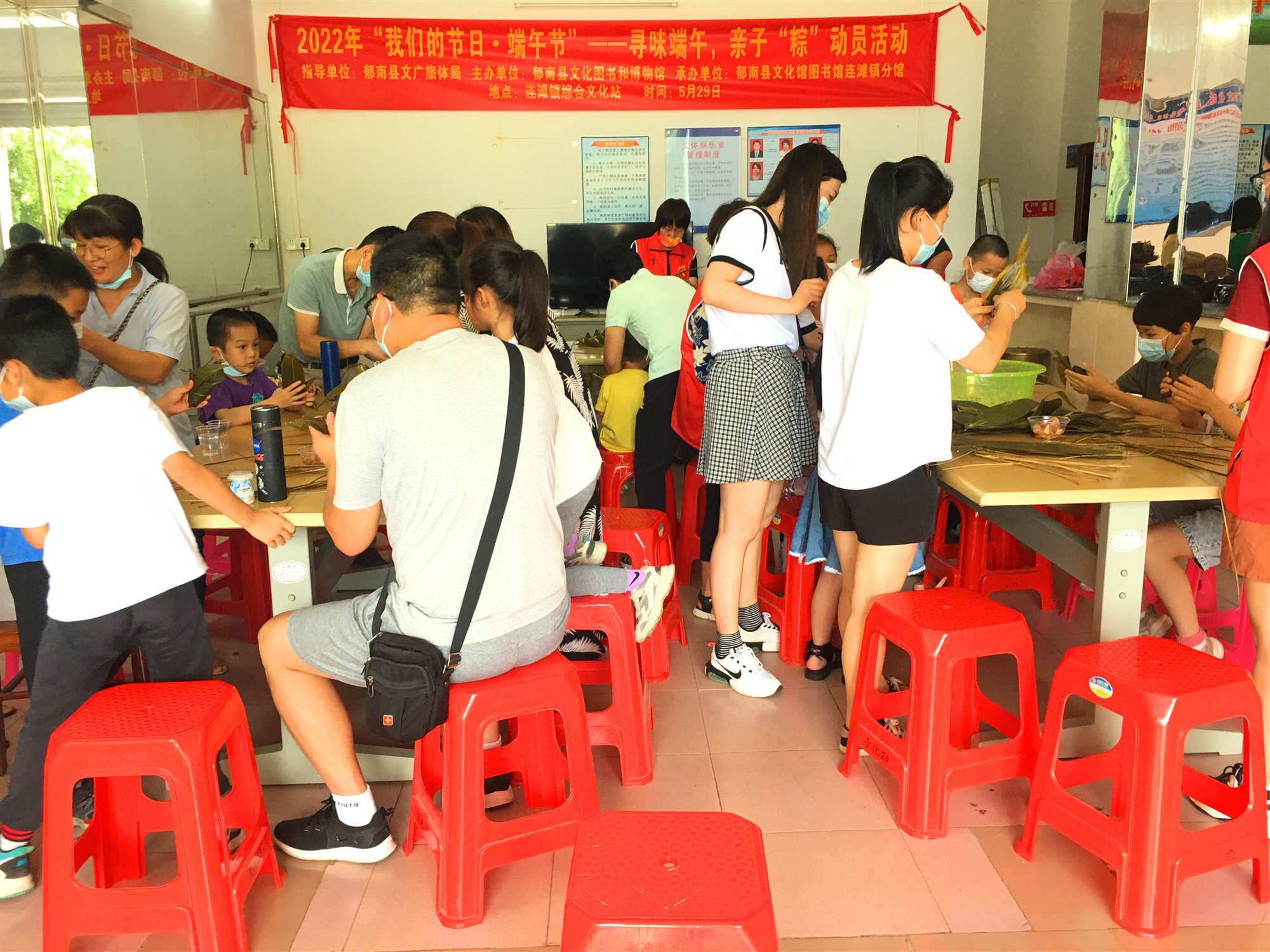 在端午節(jié)來臨之際,為了營造濃郁的節(jié)日氛圍,豐富廣大群眾精神文化生活,展示中國傳統(tǒng)節(jié)日文化的內(nèi)涵與精髓,近日,由縣文廣旅體局指導(dǎo)、縣文化圖書和博物館主辦、縣文化館圖書館連灘鎮(zhèn)分館承辦,在郁南縣連灘鎮(zhèn)綜合文化站舉行2022年“我們的節(jié)日·端午”——情濃五月天,歡樂迎端午系列活動。