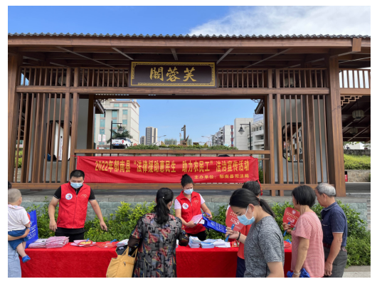 活動(dòng)現(xiàn)場(chǎng),工作人員為農(nóng)民工講解了2022年1月1日起施行的《中華人民共和國(guó)法律援助法》,詳細(xì)介紹了法律援助受理范圍以及申請(qǐng)程序,就農(nóng)民工普遍關(guān)注的勞動(dòng)合同、工資支付、保險(xiǎn)保障等法律問(wèn)題進(jìn)行解答,發(fā)送法律援助便民聯(lián)系卡,推送法律援助中心地址、電話“12348”法律援助服務(wù)熱線等信息。