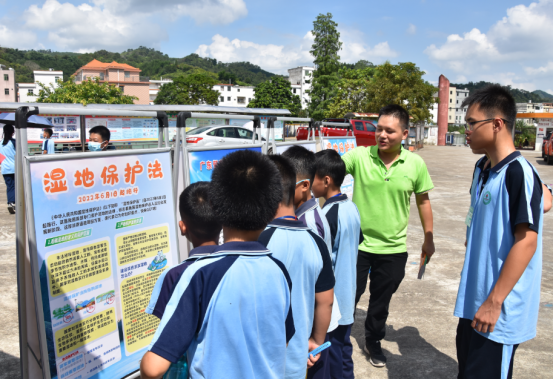 6月30日,由云浮市科協(xié)、佛山科學(xué)館、郁南縣科協(xié)、寶珠鎮(zhèn)人民政府、寶珠鎮(zhèn)中心學(xué)校、廣東郁南大河國(guó)家濕地公園聯(lián)合舉辦了云浮市2022年科普進(jìn)校園活動(dòng)。廣東郁南大河國(guó)家濕地公園以《與“法”同行》為主題,在郁南縣寶珠鎮(zhèn)中心學(xué)校開(kāi)展宣傳活動(dòng)。共有900余名師生參與活動(dòng),發(fā)放宣傳資料1000多份。