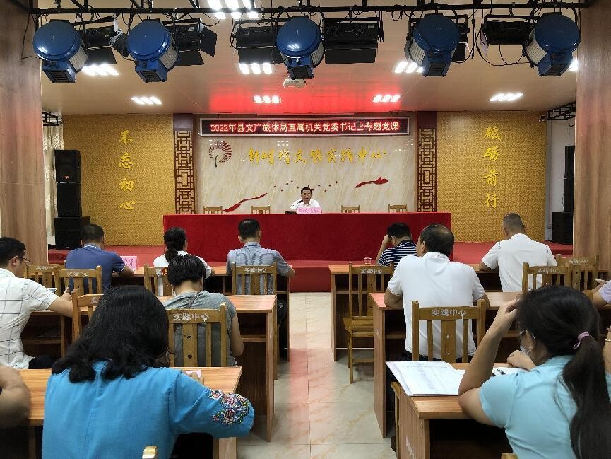 為深入學(xué)習(xí)貫徹習(xí)近平新時代中國特色社會主義思想、習(xí)近平總書記重要講話和重要指示精神,以實(shí)際行動學(xué)習(xí)宣傳貫徹省第十三次黨代會精神,引領(lǐng)文廣旅體系統(tǒng)全體黨員干部增強(qiáng)忠誠擁護(hù)“兩個確立”、堅(jiān)決做到“兩個維護(hù)”的政治自覺、思想自覺和行動自覺,凝聚奮進(jìn)新征程強(qiáng)大精神力量,推動我縣文化事業(yè)和文化產(chǎn)業(yè)穩(wěn)步前進(jìn),6月30日上午,縣文廣旅體局直屬機(jī)關(guān)黨委緊扣“喜迎二十大、奮進(jìn)新征程、建功新時代”主題,結(jié)合學(xué)習(xí)貫徹省第十三次黨代會精神,組織開展了“書記講堂”專題黨課活動,縣文廣旅體局直屬機(jī)關(guān)黨委書記李永強(qiáng)以“牢記初心、踐行使命”為題,為全體文廣旅體系統(tǒng)黨員干部主講專題黨課。