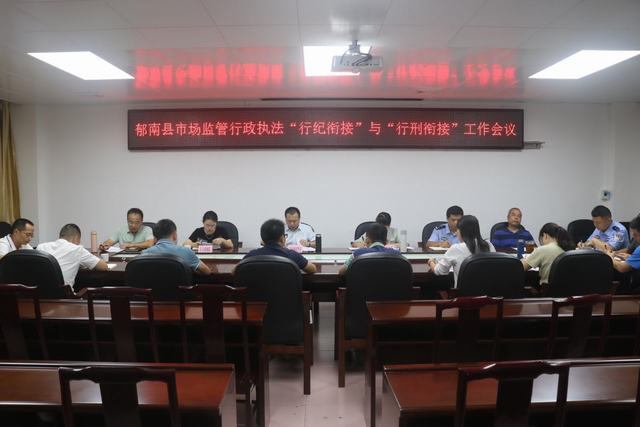 為深入推進行政執(zhí)法與刑事司法、紀委監(jiān)察的有效銜接,加大市場監(jiān)管領(lǐng)域違法犯罪行為打擊力度, 凝聚工作合力深化“行刑紀”融合。近日,郁南縣市場監(jiān)督管理局召開“行紀銜接”與“行刑銜接”工作會議。縣公安局、縣檢察院、縣紀委監(jiān)委等部門分管領(lǐng)導同志參加會議。