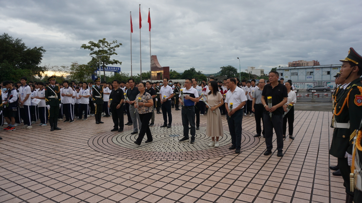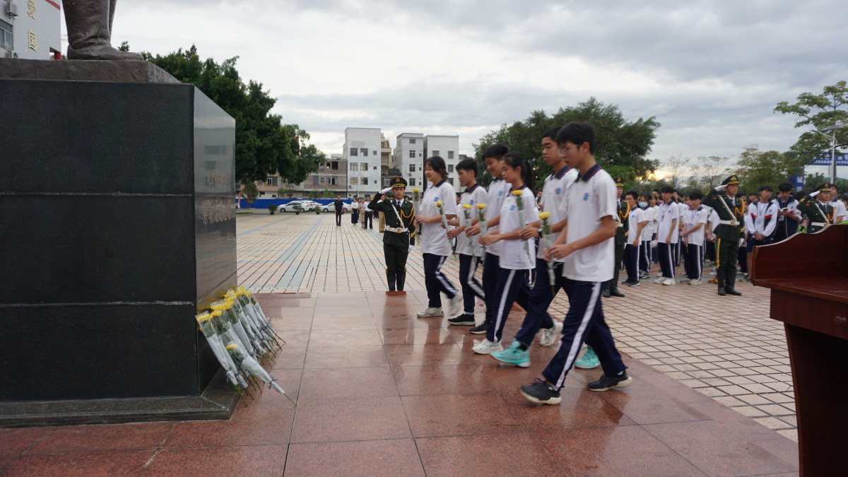 勿忘英烈志,傳承英烈魂。高一1班傅志彬同學(xué)代表全校學(xué)生獻詞追思英烈。讓我們靜靜地追思,深深地緬懷,把最深情的思念和最崇高的敬意,寄托在這九月的鮮花中,讓它陪伴在先烈的左右。