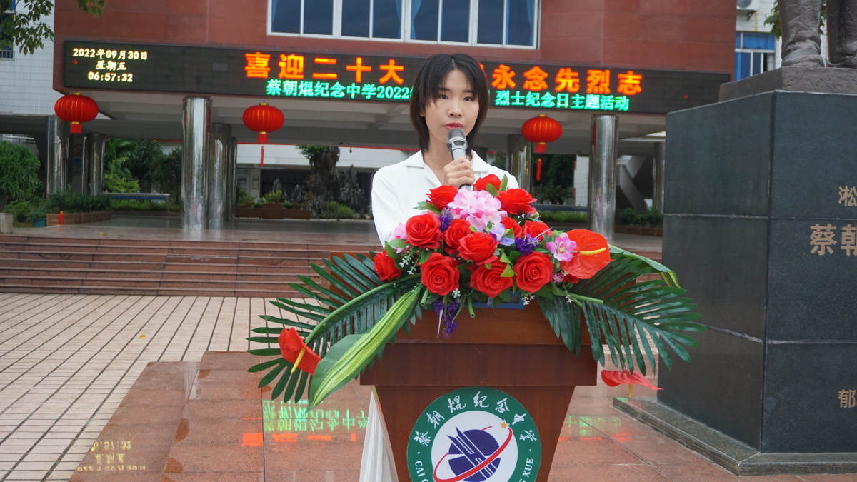 上午7時,全校師生在蔡朝焜烈士銅像前整齊列隊。主持人孔晴老師向蔡朝焜烈士銅像鞠躬后,宣布紀念儀式開始。