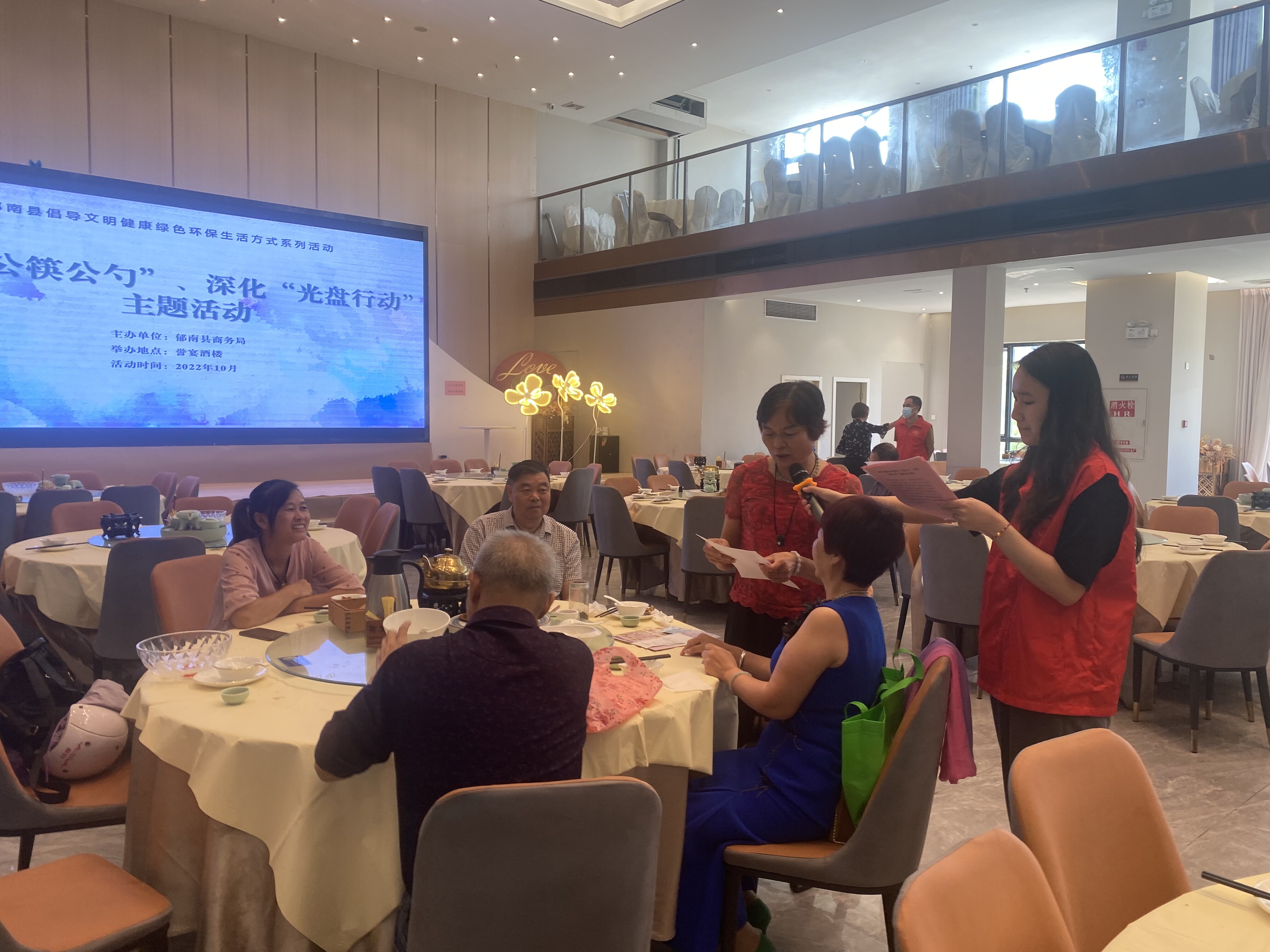 為持續(xù)引導市民養(yǎng)成勤儉節(jié)約習慣,營造浪費可恥、節(jié)約為榮的良好社會風尚,10月27日上午,郁南縣商務局在譽宴酒樓開展倡導“公筷公勺”、深化“光盤行動”主題活動。