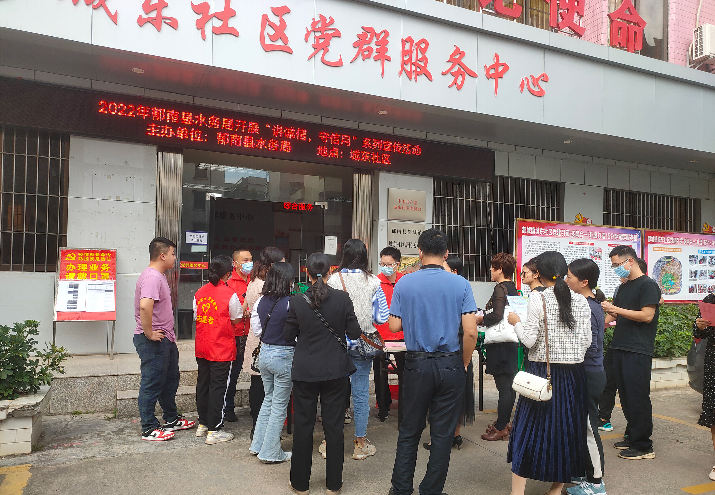 11月17日下午,縣水務(wù)局組織工作人員聯(lián)合城東社區(qū)開展“講誠信,守信用”系列宣傳活動,普及誠信獎懲、個人信用等相關(guān)知識,共建“誠信郁南”。