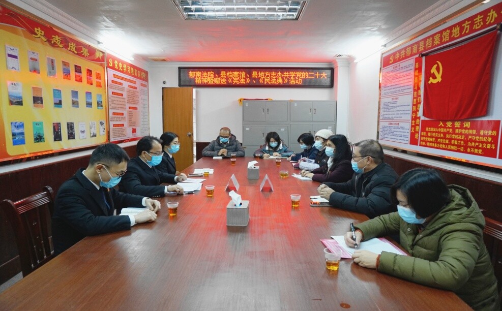 12月6日,郁南法院第一黨支部聯(lián)合縣檔案館、縣地方志辦開展主題黨日活動,共學黨的二十大精神,推進雙方黨建資源聯(lián)動共享、協(xié)力共進?;顒又?,法院干警向縣檔案館、縣地方志辦的同志贈送了憲法、民法典等法律讀本,并領學、解讀憲法相關法律知識,講述現(xiàn)行憲法公布施行的重大意義,引導機關干部增強憲法意識,提高依法履職能力,做憲法的堅定維護者和忠誠執(zhí)行者。