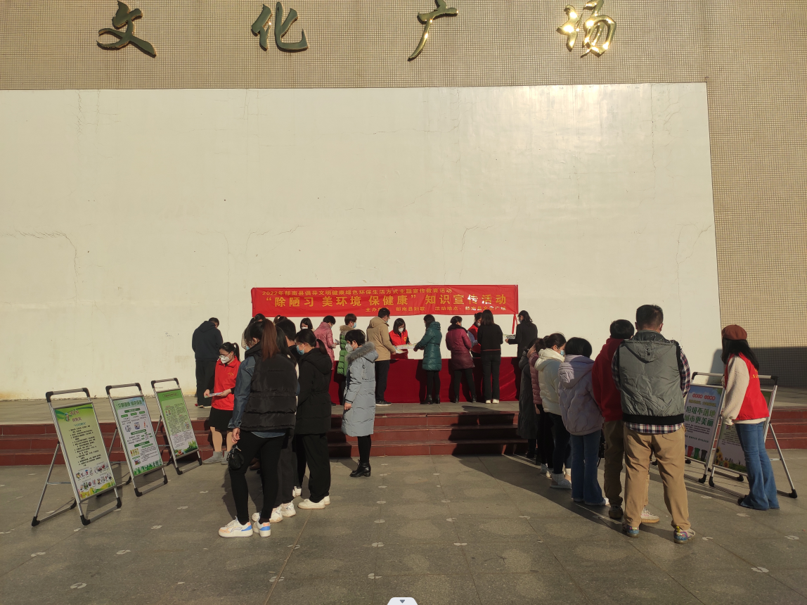 宣傳活動現(xiàn)場,志愿者還通過發(fā)放宣傳單張、宣傳小冊子、環(huán)保袋、現(xiàn)場解答等方式,積極向群眾宣傳“除陋習 美環(huán)境 保健康”的