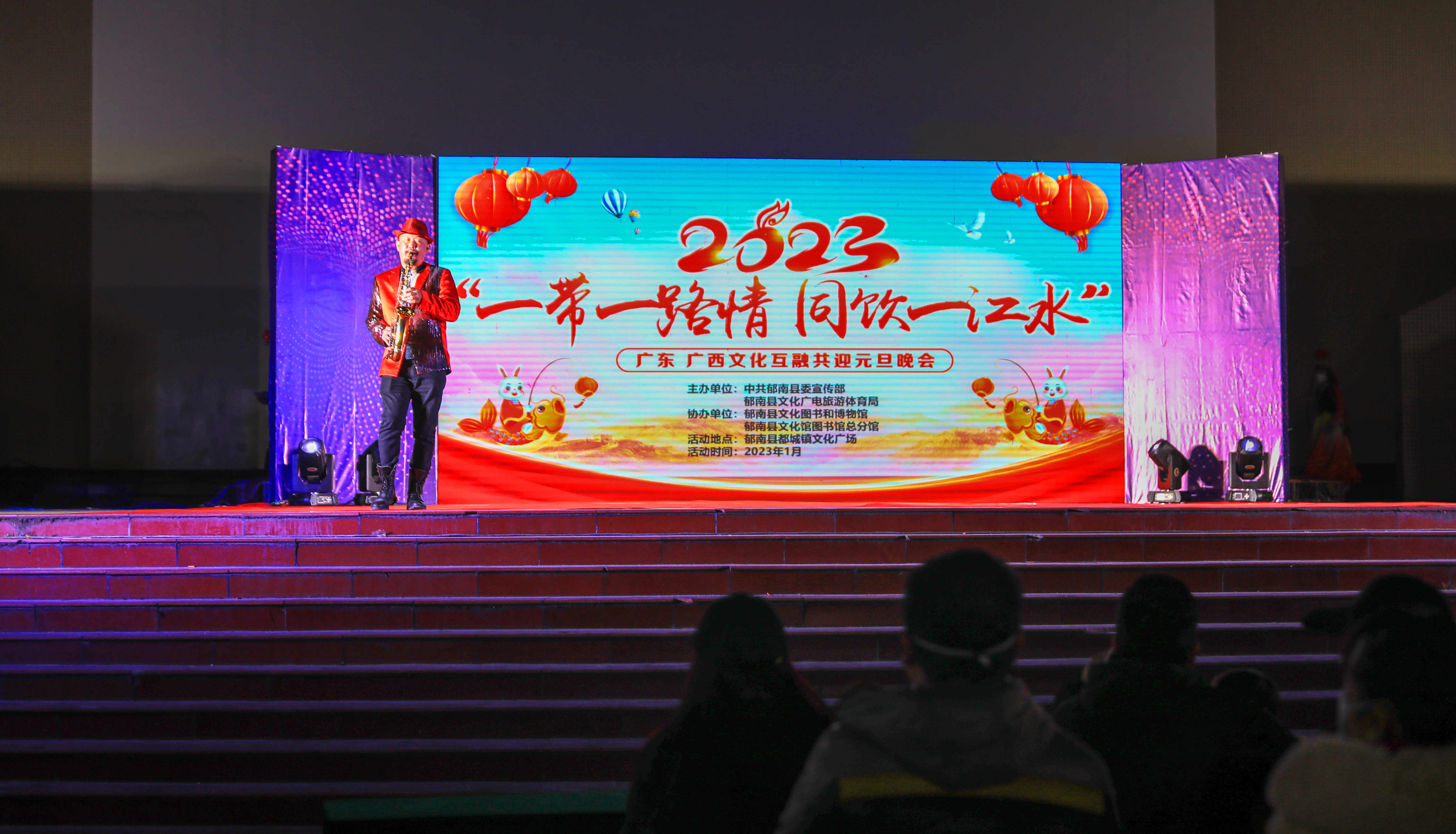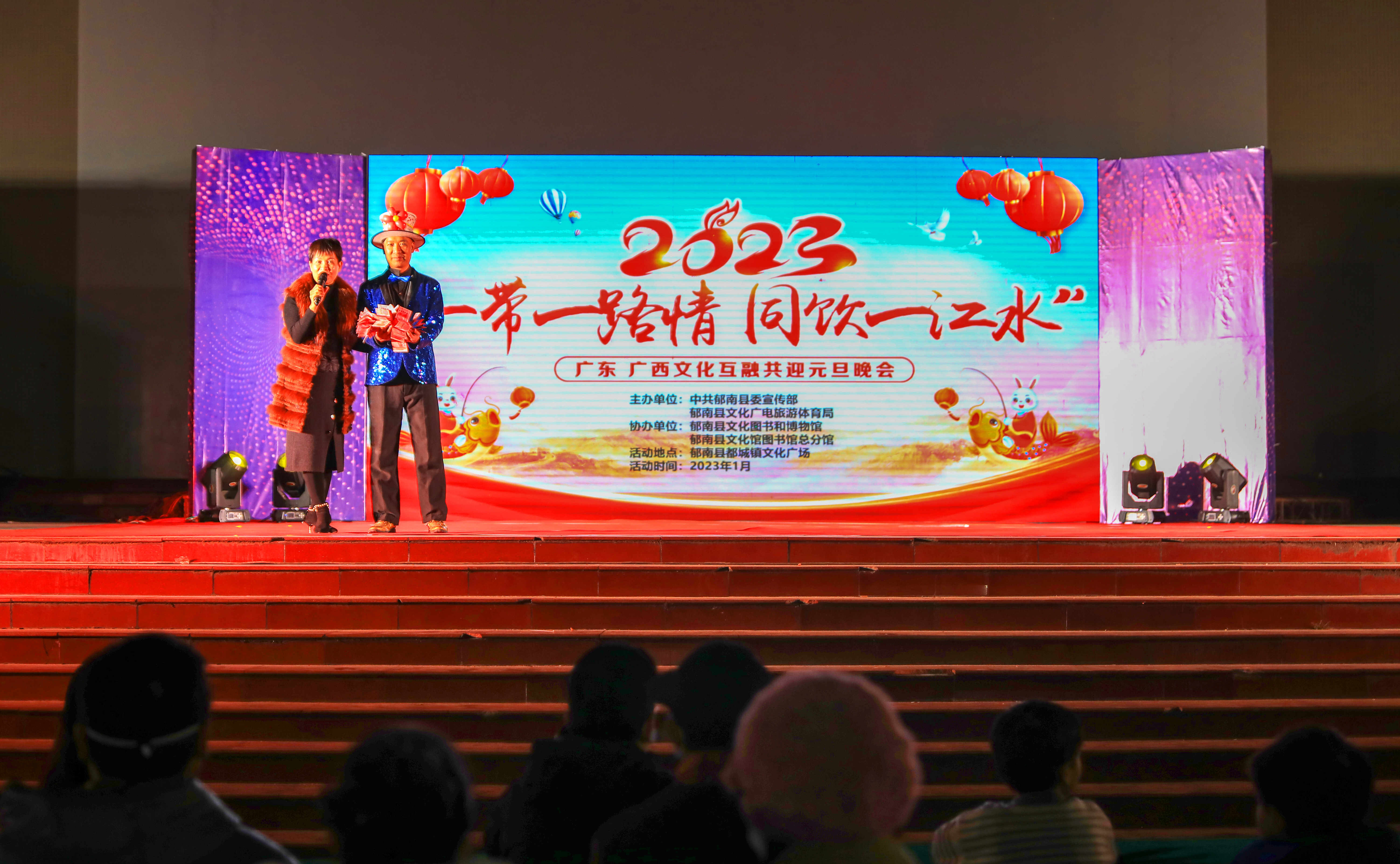 為促進(jìn)廣東、廣西地區(qū)的文化交流互融,傳承和弘揚(yáng)嶺南文化,發(fā)揮粵桂兩省區(qū)文化同根、生活同源、語言同聲等優(yōu)勢,2023年1月1日晚,由中共郁南縣委宣傳部、郁南縣文化廣電旅游體育局主辦、郁南縣文化圖書和博物館和郁南縣文化圖書和博物館總分館協(xié)辦的2023《“一帶一路”情 同飲一江水》”廣東 廣西文化互融共迎元旦晚會在郁南縣文化廣場舉行,吸引了各界群眾前往觀看。