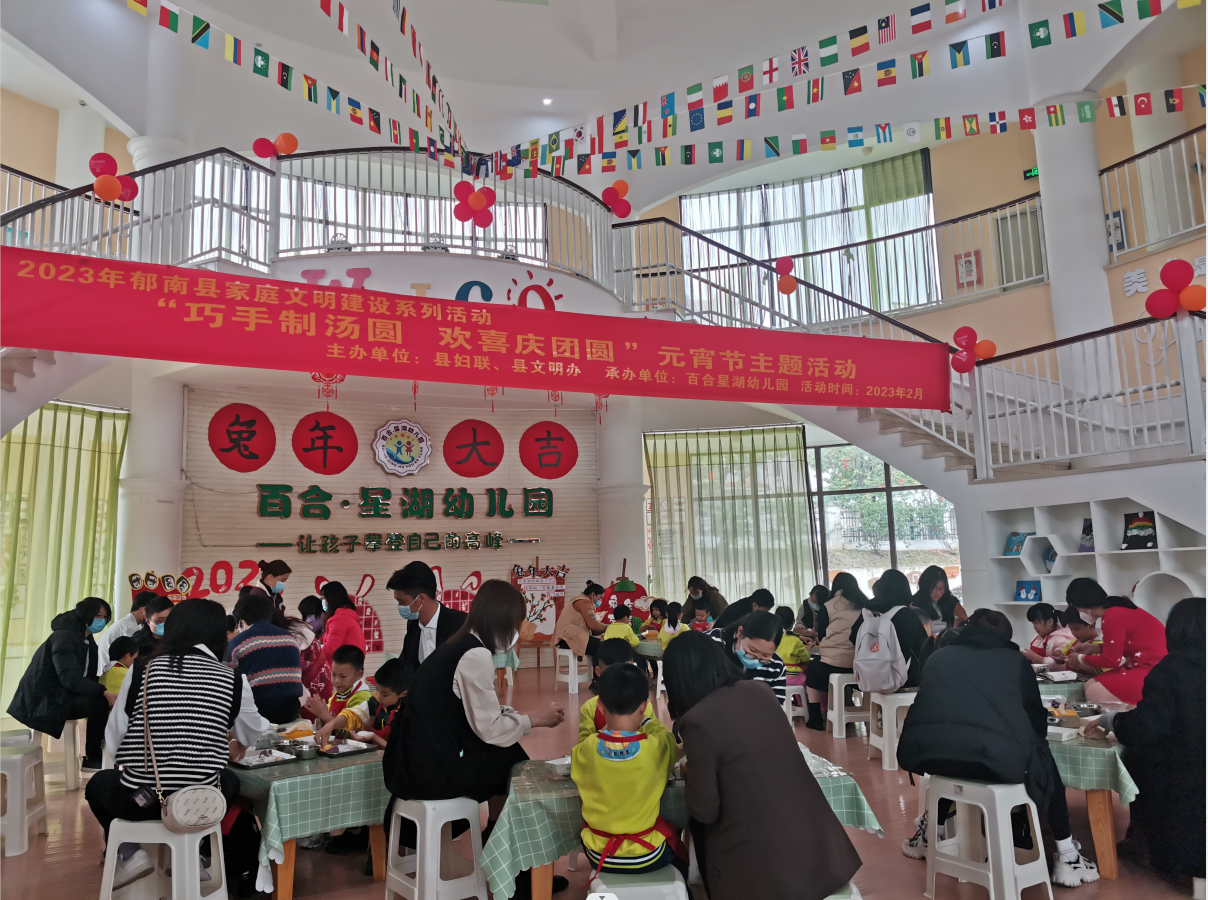 為深入貫徹落實(shí)習(xí)近平總書記關(guān)于家庭家教家風(fēng)建設(shè)的重要論述,弘揚(yáng)和傳承中華優(yōu)秀傳統(tǒng)文化,培育和踐行社會主義核心價值觀,推進(jìn)家庭文明建設(shè)。2月3日,郁南縣婦聯(lián)、縣文明辦在百合星湖幼兒園開展“巧手制湯圓 歡喜慶團(tuán)圓 ”元宵節(jié)主題活動,近20多對親子家庭參加了活動。