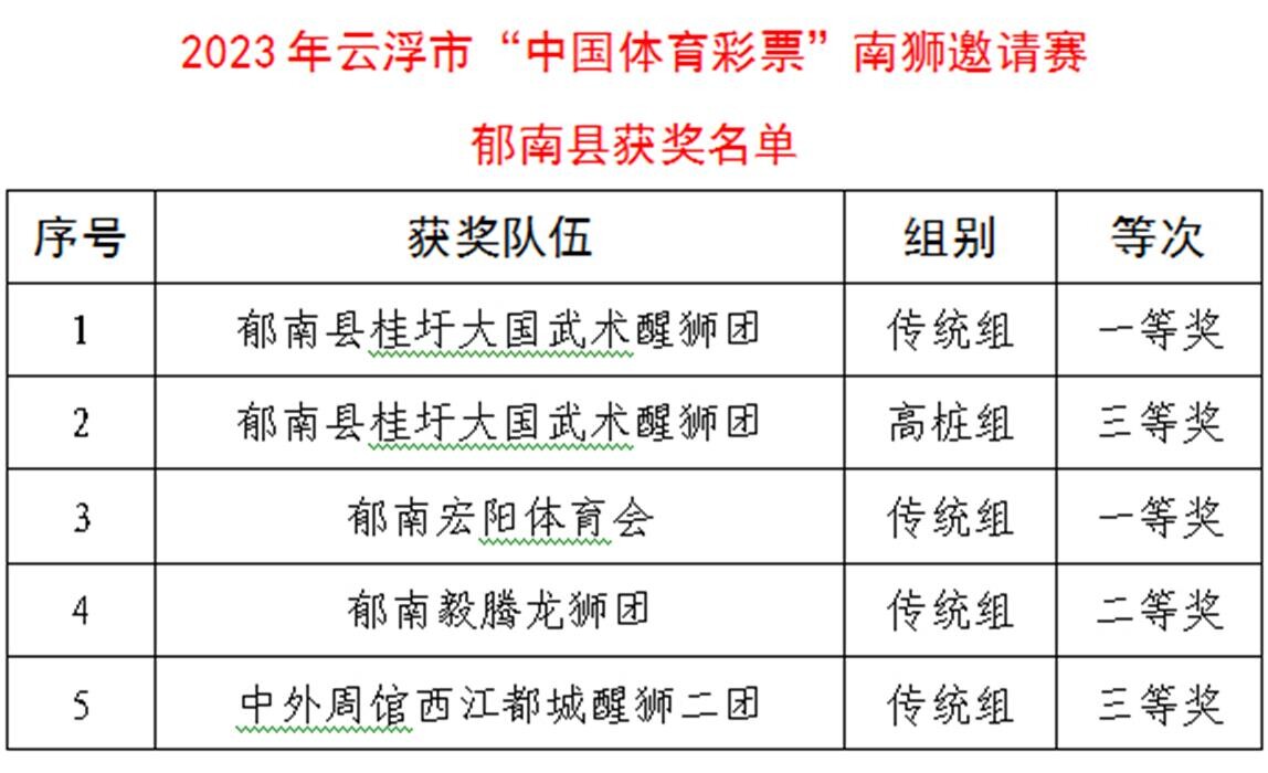 近日,由云浮市文化廣電旅游體育局主辦、云浮市龍獅運(yùn)動協(xié)會承辦的2023年云浮市“中國體育彩票”南獅邀請賽在云浮市體育公園成功舉辦,郁南縣龍獅運(yùn)動協(xié)會組織郁南縣桂圩大國武術(shù)醒獅團(tuán)、郁南宏陽體育會、郁南毅騰龍獅團(tuán)、中外周館西江都城醒獅二團(tuán)4支隊伍參賽,載譽(yù)歸來。