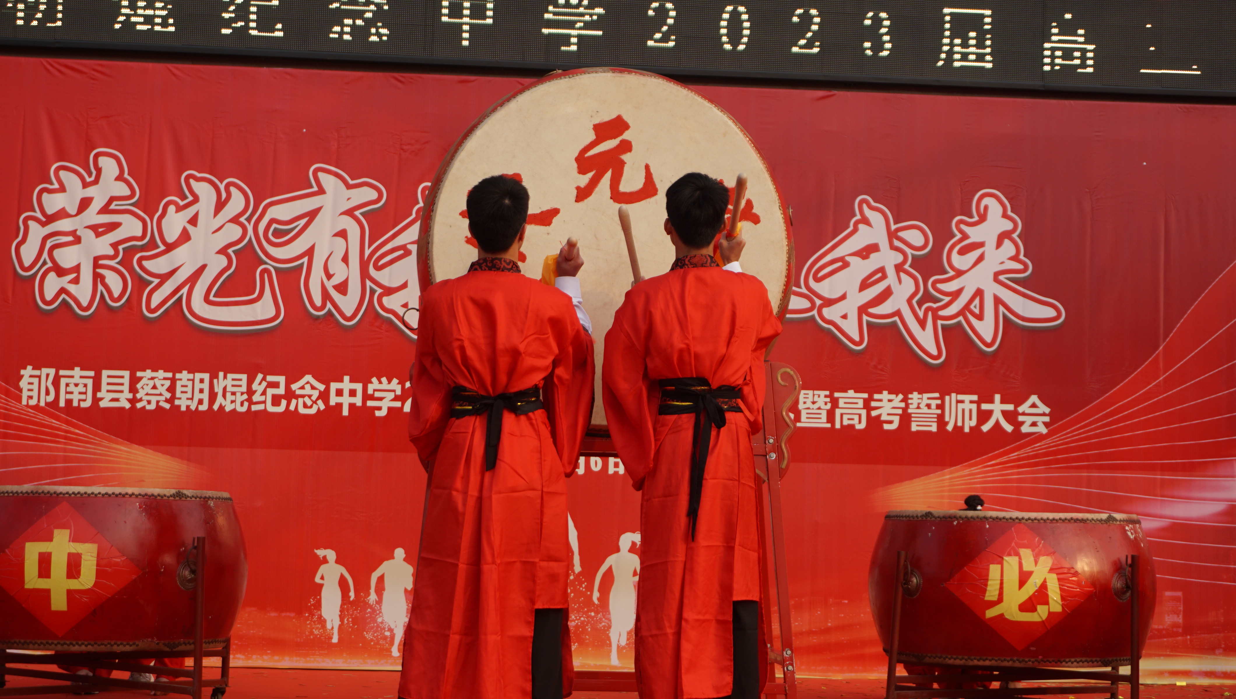 高三6班蔡耀星、高三13班譚冠州同學作為學生代表敲響狀元鼓。