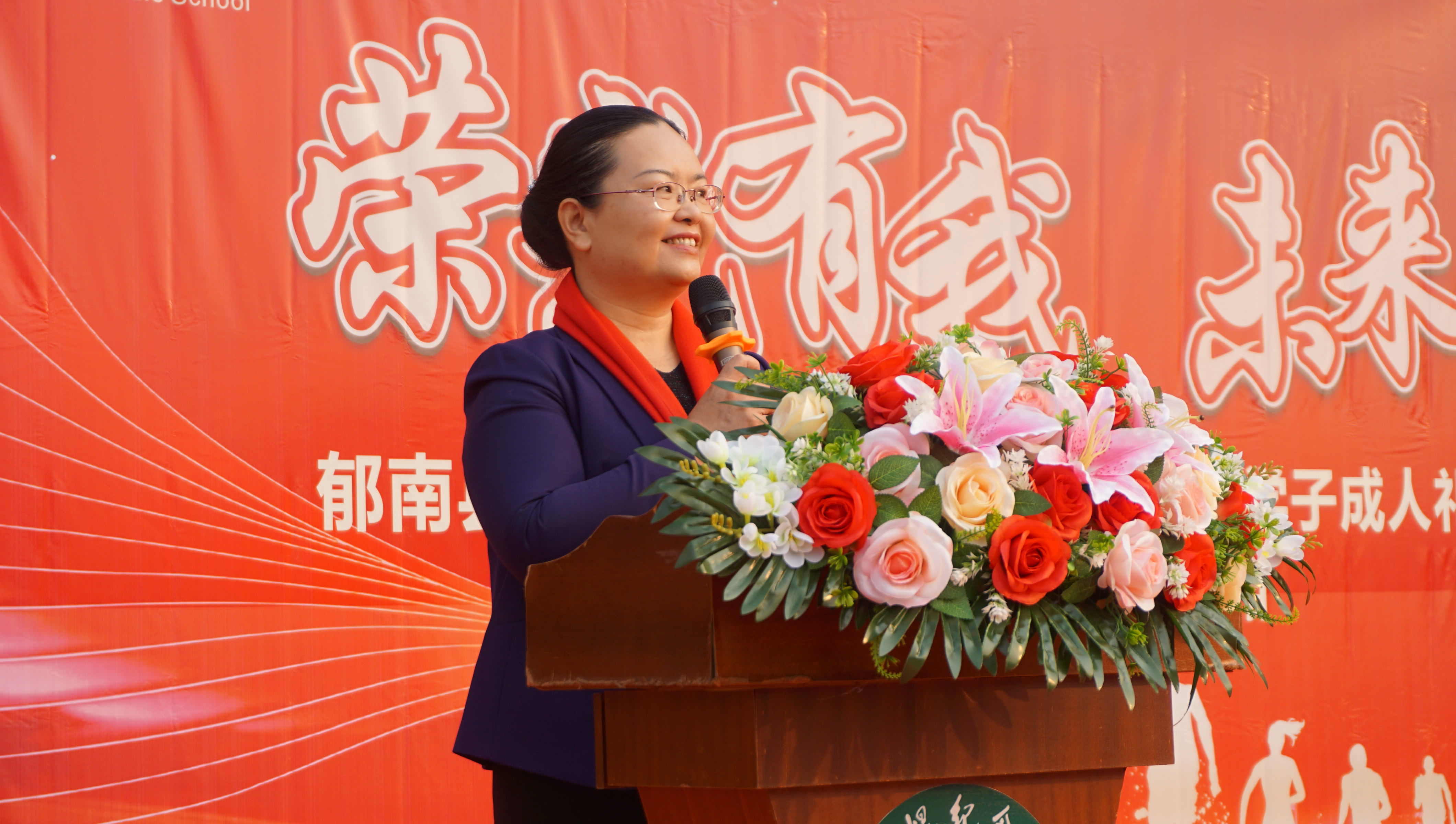 青春之歌,余音裊裊;校長寄語,期望殷殷。學校黨總支書記、校長彭燕飛作青春寄語。她勉勵同學們要飲水思源,心懷感恩;要沉心靜氣,扎實根基;要勇?lián)熑危貞褖粝?;要抓住時代機遇,承擔起祖國與民族復興的責任,積極投身到實現(xiàn)偉大中國夢的洪流之中,在為祖國、為人民竭誠奉獻中,展現(xiàn)絢麗的青春。