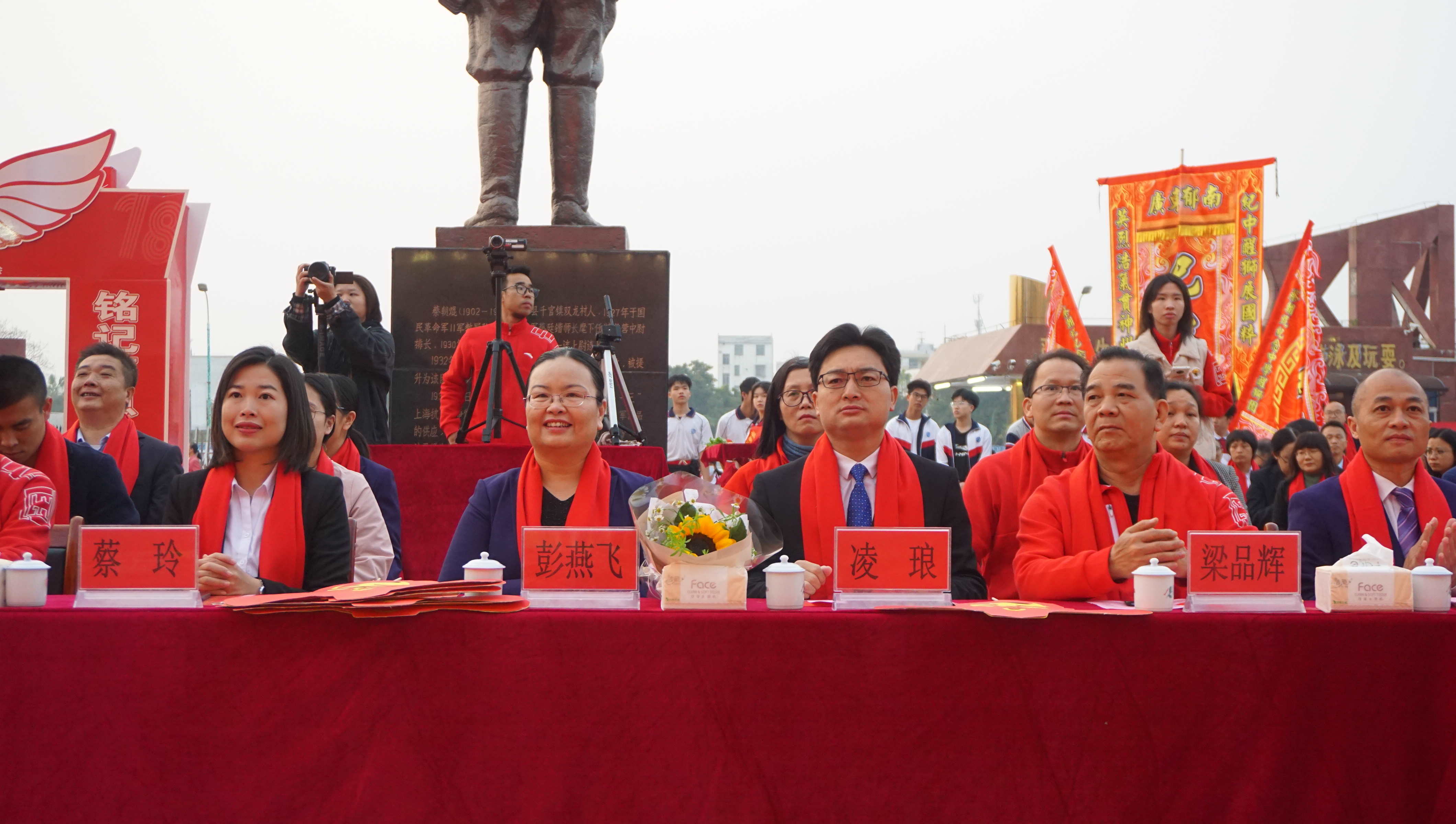 團縣委書記蔡玲同志、教育局副局長凌瑯同志、彭燕飛校長、陳演年副校長及黃廣行主任為100天倒計時牌揭幕。