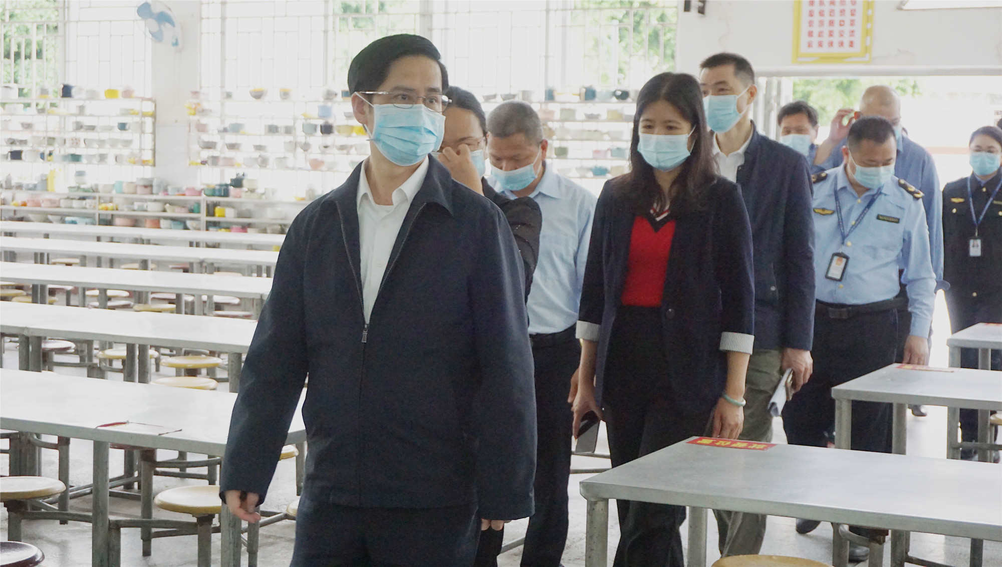為進(jìn)一步壓緊壓實(shí)學(xué)校食堂食品安全屬地管理責(zé)任和主體責(zé)任,3月20日,云浮市副市長梁東海一行蒞臨郁南縣蔡朝焜紀(jì)念中學(xué)開展食品安全“兩個責(zé)任”落實(shí)督導(dǎo)工作。郁南縣副縣長邱桂英及縣市場監(jiān)督管理局、縣教育局主要負(fù)責(zé)同志陪同檢查。 梁東海副市長一行認(rèn)真聽取了學(xué)校校長彭燕飛關(guān)于學(xué)校食品安全工作的匯報,并對學(xué)校食堂落實(shí)食品安全各項管理制度和措施情況進(jìn)行督查,重點(diǎn)檢查了學(xué)校食堂衛(wèi)生、食品從業(yè)人員健康管理、食材采購貯存、加工制作、食品留樣、餐飲具清洗消毒、餐廚廢棄物的規(guī)范處置和“互聯(lián)網(wǎng)+明廚亮灶”建設(shè)等情況。 梁東海副市長強(qiáng)調(diào),食品安全“兩個責(zé)任”工作機(jī)制是全年落實(shí)食品安全要求的重要抓手,學(xué)校要對標(biāo)對表嚴(yán)格落實(shí)相關(guān)食品安全要求,切實(shí)履行校園食品安全主體責(zé)任,將食品安全工作做細(xì)、做實(shí)、做好,嚴(yán)格做好食品采購、加工直至端上餐桌的全過程管理。監(jiān)管部門要常態(tài)化履行監(jiān)管職能,牢牢守住學(xué)校食品安全防線,保障廣大師生飲食安全。