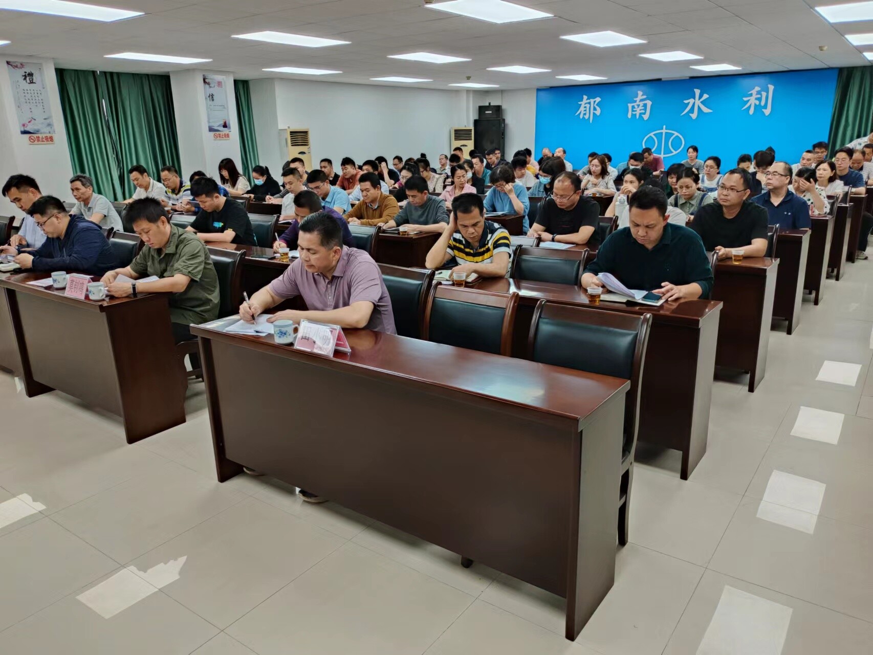 為貫徹落實縣委1147工作部署,落實全面從嚴(yán)治黨,加強(qiáng)作風(fēng)建設(shè),深入推進(jìn)黨風(fēng)廉政建設(shè)工作,強(qiáng)化水利系統(tǒng)各項工作落細(xì)落實。近日,縣水務(wù)局黨組書記、局長王炯傳主持召開郁南縣水務(wù)系統(tǒng)作風(fēng)建設(shè)暨黨風(fēng)廉政建設(shè)工作會議。局系統(tǒng)科級干部、股室負(fù)責(zé)人及局機(jī)關(guān)全體人員共80多人參加會議。