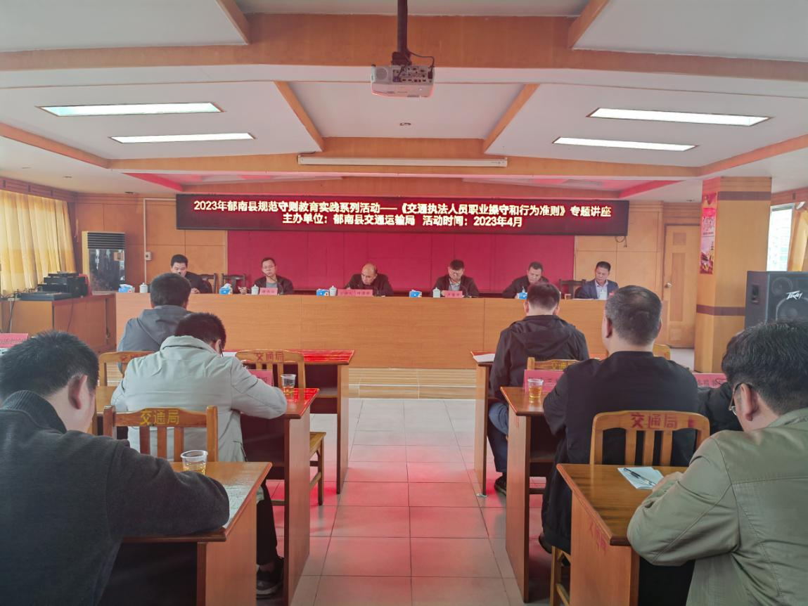 2023年4月1日,郁南縣交通運(yùn)輸局組織召開規(guī)范守則教育實(shí)踐系列活動(dòng)——《交通執(zhí)法人員職業(yè)操守和行為準(zhǔn)則》的專題講座。此次講座由交通運(yùn)輸局黨組書記、局長葉澤華同志主講,局全體工作人員參加。