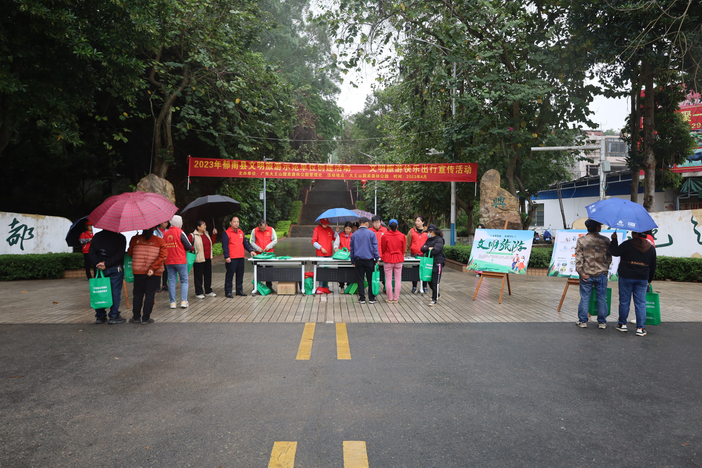“五一”將至,為大力倡導(dǎo)文明旅游,進(jìn)一步提升游客和市民的文明旅游素質(zhì),營造和諧健康的旅游市場氛圍。4月25日上午,廣東大王山國家森林公園管理處聯(lián)合縣林業(yè)局組織志愿者在大王山國家森林公園積極開展“文明旅游快樂出行”為主題的宣傳活動,引導(dǎo)游客和市民參與、宣傳文明旅游。
