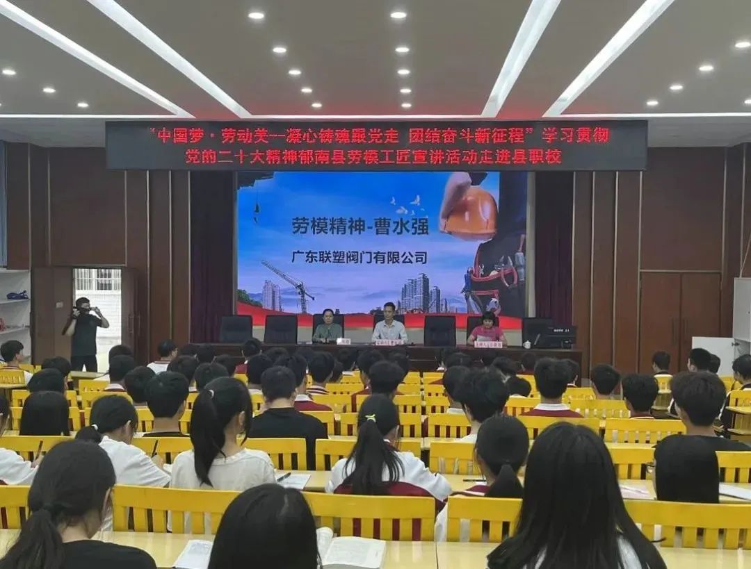 2023年5月10日下午,由縣總工會組織的“中國夢·勞動美——凝心鑄魂跟黨走團結(jié)奮斗新征程”勞模工匠宣講活動走進郁南縣職業(yè)技術(shù)學(xué)校,2023年五一勞動獎?wù)芦@得者曹水強回母校進行主題為“勞模精神”的演講。