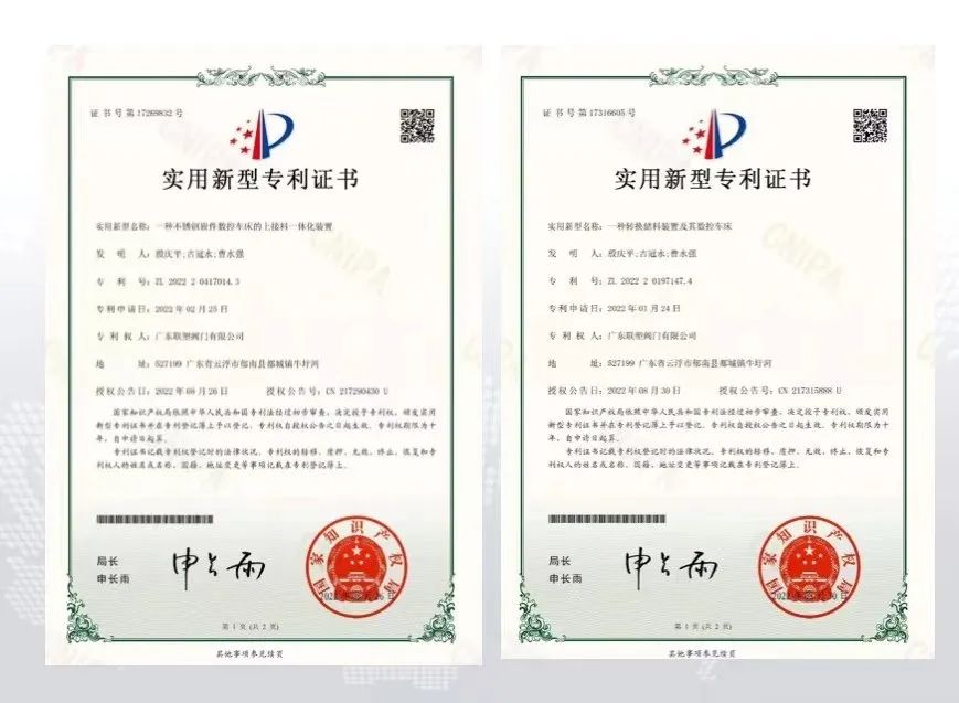 為了提升生產(chǎn)效率,降低員工勞動強度,曹水強把產(chǎn)品的加工工藝和工裝夾具全部進行了二次技改及重新設(shè)計,于2022年獲得兩項數(shù)控技改國家實用新型專利。