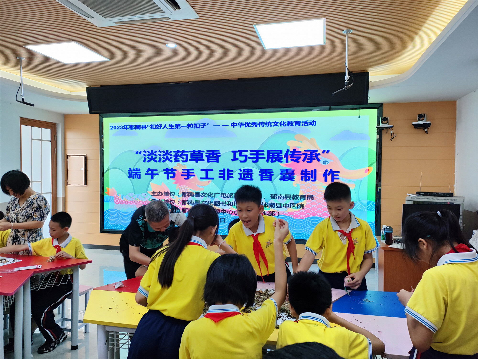 “五月五,過端午,粽葉青,糯米香,掛菖蒲,戴香包……”端午節(jié)是我國首個入選世界非物質文化遺產的節(jié)日。為扎實開展未成年人思想道德建設工作,以中華優(yōu)秀傳統(tǒng)文化教育實踐活動引導廣大未成年人“扣好人生第一??圩印?,2023年6月20日,郁南縣文廣旅體局、郁南縣文化圖書和博物館走進都城鎮(zhèn)中心小學(校本部),共同開展“淡淡藥草香 巧手展傳承”端午節(jié)手工非遺香囊制作活動,讓中華傳統(tǒng)節(jié)日文化融入校園,把文化自信的種子植入孩子們的心田。