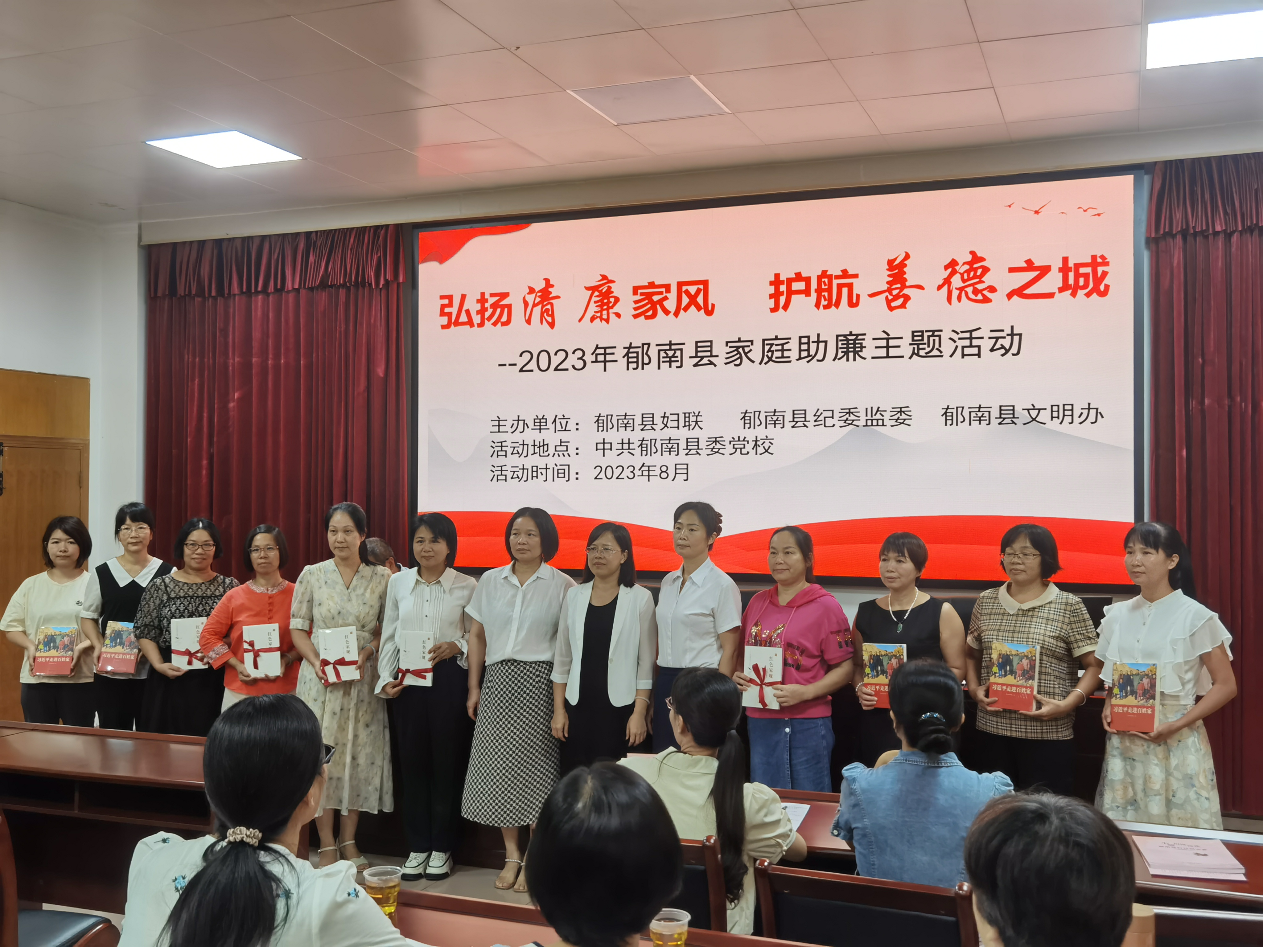 活動(dòng)現(xiàn)場,縣婦聯(lián)主要負(fù)責(zé)人宣讀了《建設(shè)廉潔家庭倡議書》,向全縣黨員干部家庭發(fā)出“弘揚(yáng)清廉家風(fēng) 護(hù)航善德之城”倡議,并希望廣大黨員干部積極做清廉家風(fēng)的參與者、監(jiān)督者和宣傳者,筑牢家庭拒腐防變的堅(jiān)固長堤,把家庭建設(shè)成為廉潔幸福的溫馨港灣,讓廉潔之風(fēng)常駐,讓幸福之花常來,為建設(shè)“清廉郁南”貢獻(xiàn)家庭力量。接著大家集體觀看廉潔家風(fēng)篇微電影《橋》;參會(huì)領(lǐng)導(dǎo)現(xiàn)場為郁南縣家庭教育講師團(tuán)成員贈(zèng)送《習(xí)近平走進(jìn)百姓家》和一批家風(fēng)建設(shè)讀本;并邀請(qǐng)?jiān)聘∈?、郁南縣家庭教育講師團(tuán)成員圍繞深入貫徹落實(shí)習(xí)近平總書記關(guān)于家庭家教家風(fēng)建設(shè)、廉潔文化建設(shè)的重要論述開展家教家風(fēng)專題講座,重點(diǎn)圍繞學(xué)習(xí)習(xí)近平新時(shí)代中國特色社會(huì)主義思想和黨的二十大精神,提高廣大家庭教育工作者和指導(dǎo)者的專業(yè)素養(yǎng)和指導(dǎo)水平開展家庭教育講師示范培訓(xùn)。