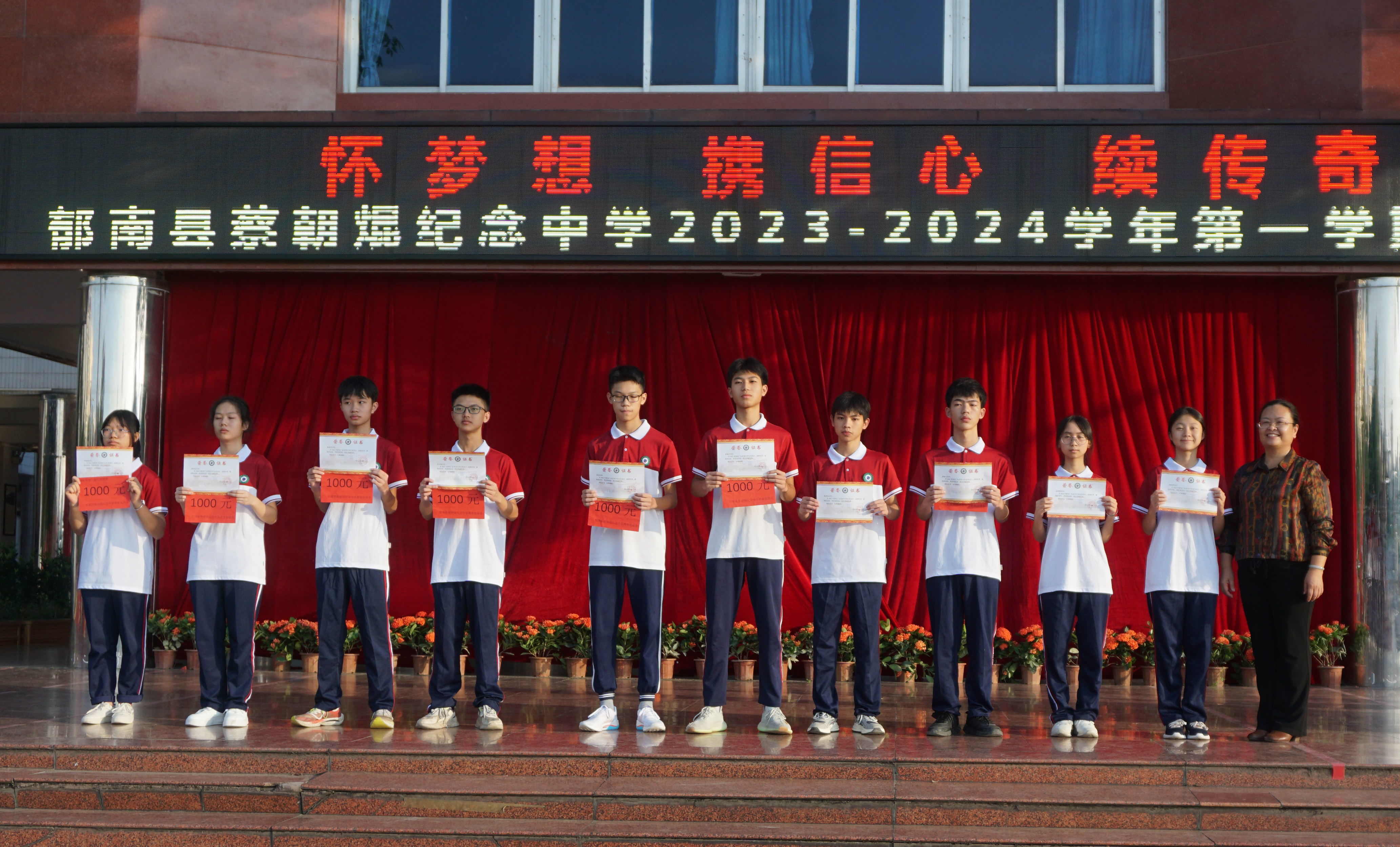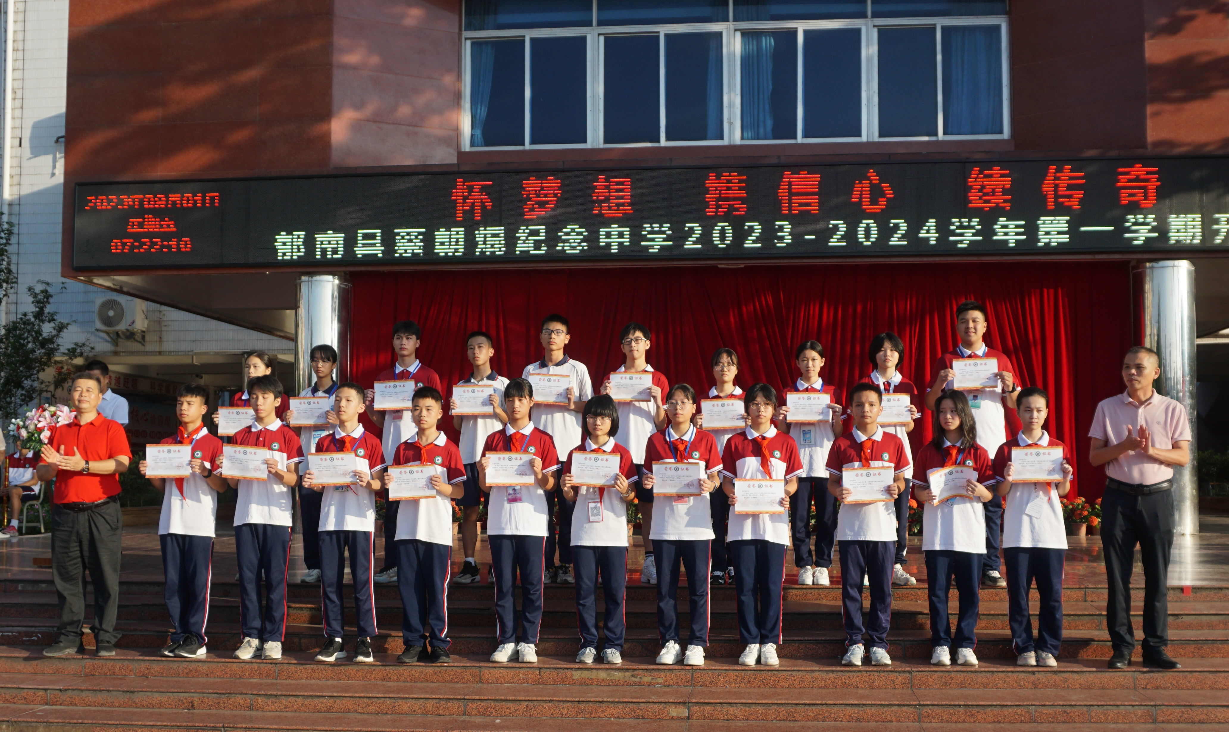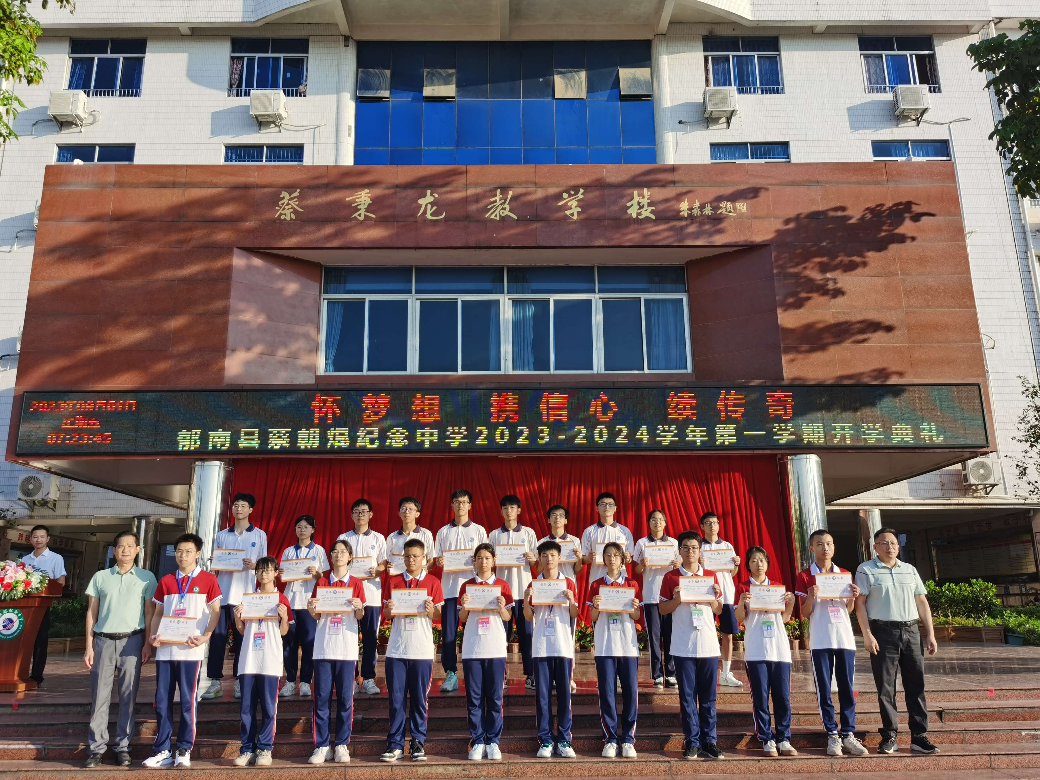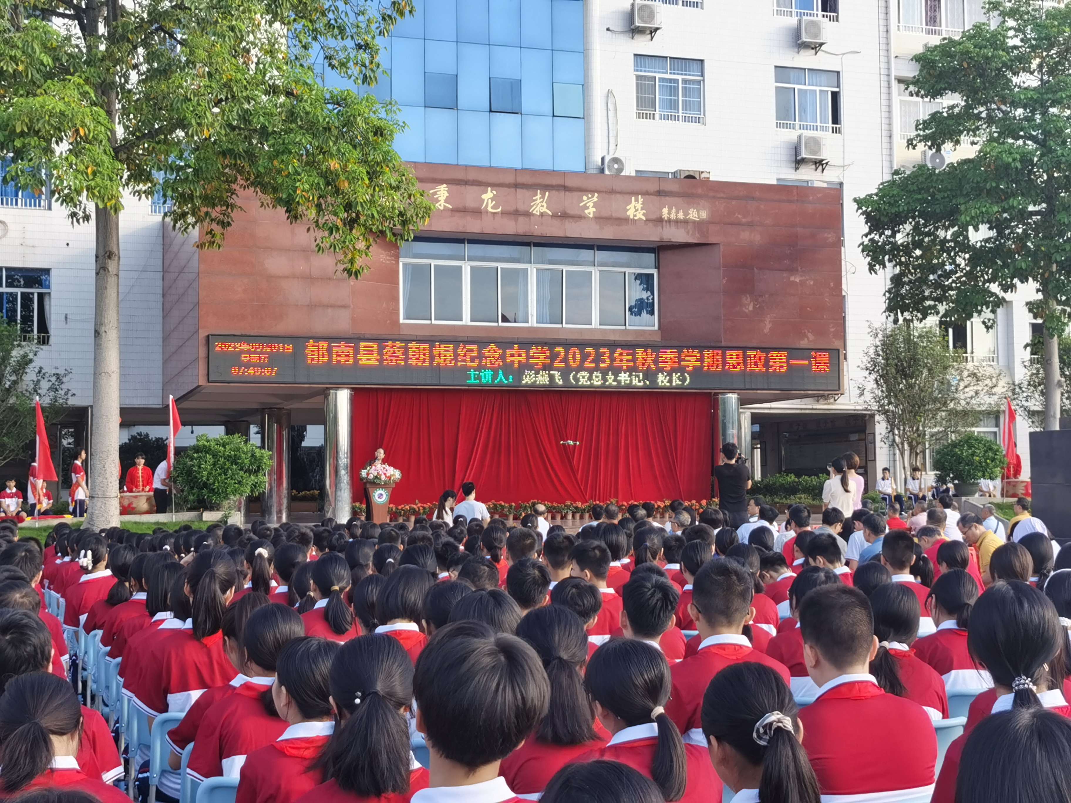 2023年9月1日,蔡朝焜紀念中學(xué)2023--2024學(xué)年第一學(xué)期開學(xué)典禮在學(xué)校中心廣場舉行。郁南縣人民政府副縣長楊桂平,郁南縣教育局黨組成員覃建南,蔡朝焜紀念中學(xué)黨總支書記、校長彭燕飛,蔡朝焜紀念中學(xué)全體師生以及都城中學(xué)九年級師生參加了本次開學(xué)典禮。典禮由韋金富副校長主持。