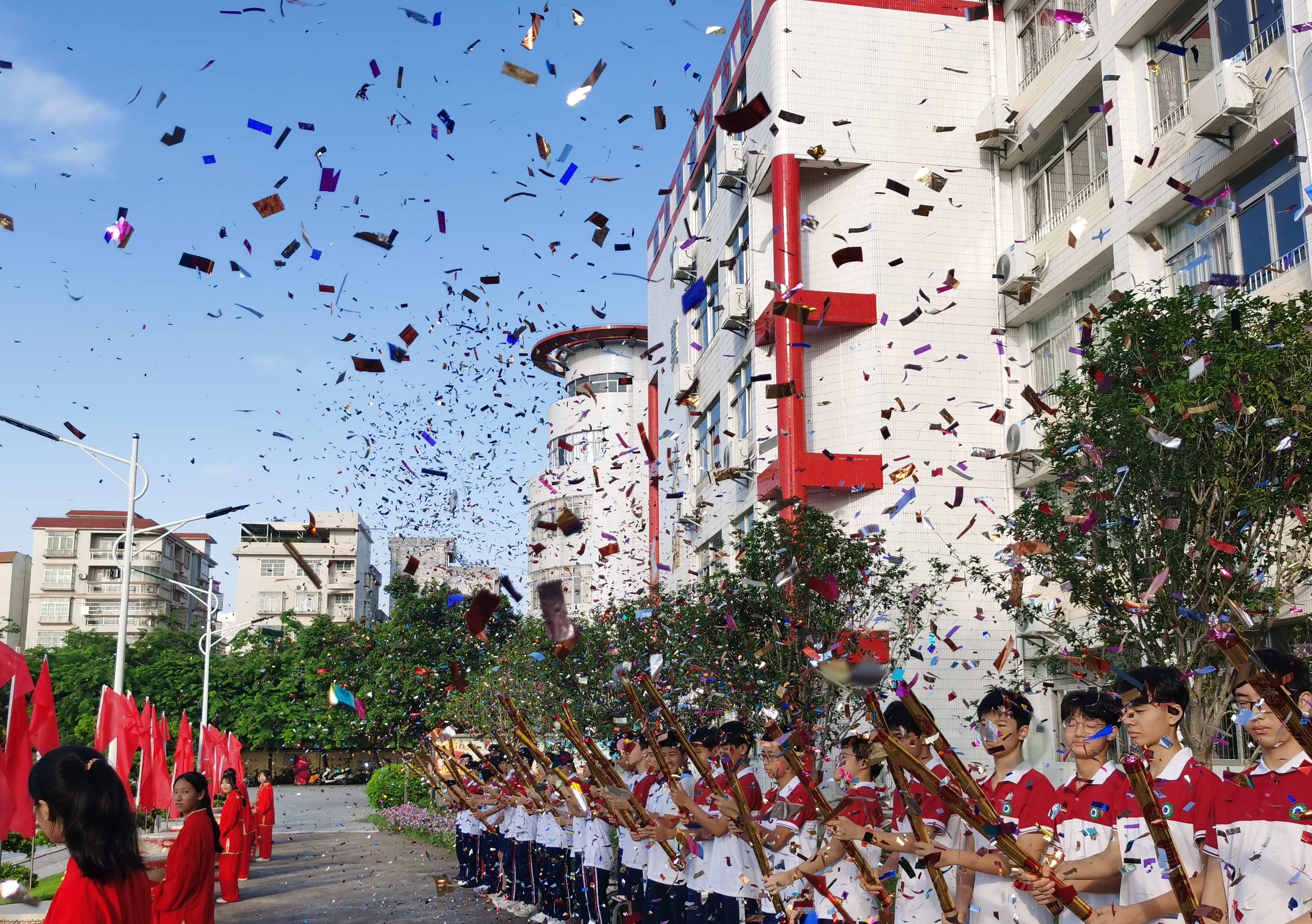 典禮最后,代表著蔡朝焜紀念中學(xué)和都城中學(xué),共81個班級的81支禮炮齊鳴。新學(xué)年的帷幕已經(jīng)拉開,讓我們面向未來,主動學(xué)習(xí),接受挑戰(zhàn),讓青春之花綻放出燦爛的光芒!