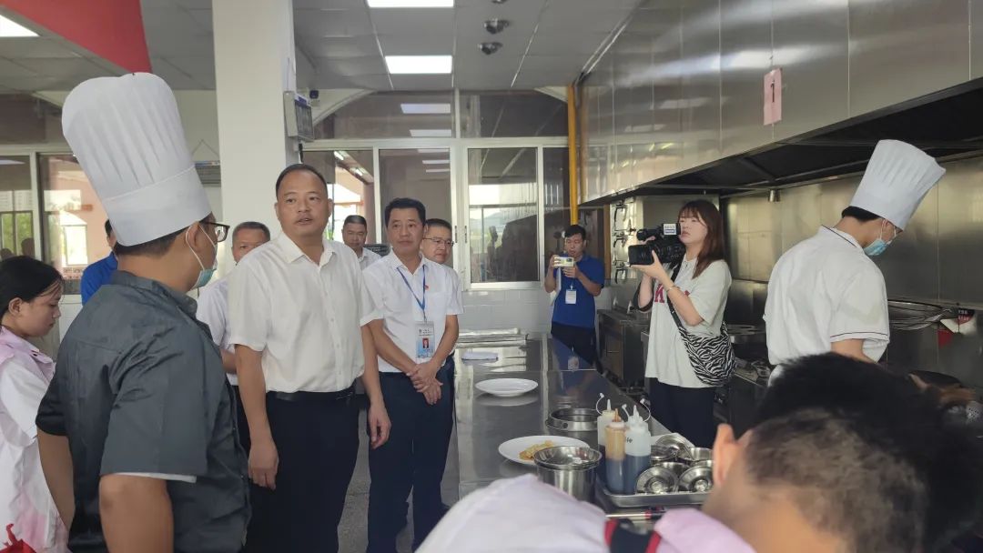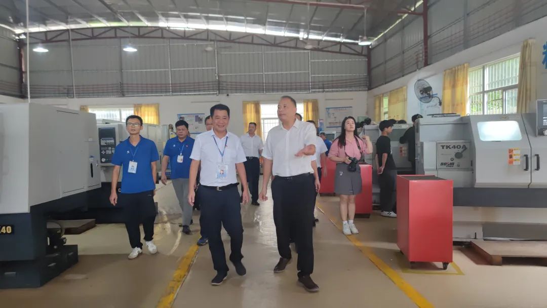 梁書記一行先后參觀了該校的烹飪實訓(xùn)室、南粵家政室、數(shù)控實訓(xùn)車間等實訓(xùn)場室。并聽取學(xué)校負(fù)責(zé)人關(guān)于該校的學(xué)校規(guī)劃、專業(yè)建設(shè)、實訓(xùn)開展、課堂教學(xué)、辦學(xué)特色、教學(xué)設(shè)施配備、師資隊伍建設(shè)等情況匯報。