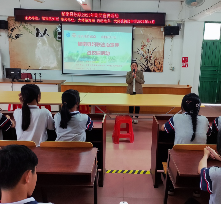 為深入推進(jìn)未成年人法治教育,提高未成年人法治意識(shí)和自我保護(hù)能力,增強(qiáng)未成年人安全意識(shí)、法律意識(shí)和自我保護(hù)意識(shí),護(hù)航健康成長(zhǎng),11月9日下午郁南縣婦聯(lián)走進(jìn)大灣鎮(zhèn)初級(jí)中學(xué)開展“法治宣傳進(jìn)校園”活動(dòng),參加活動(dòng)的師生約200人。