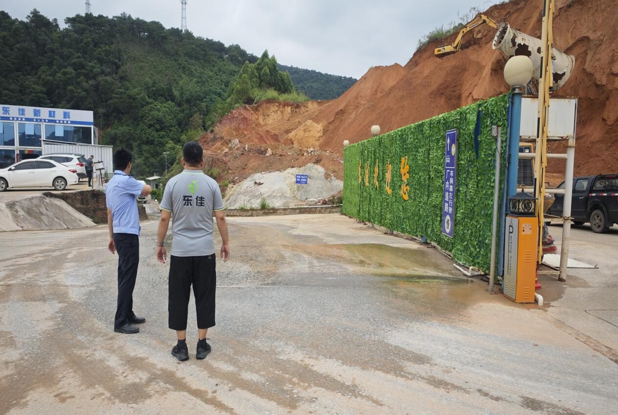 執(zhí)法人員實(shí)地檢查貨車出場(chǎng)清洗設(shè)施